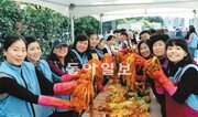 따뜻한 겨울나기를 위한 사랑의 김장나누기 행사가 부산 울산 경남에서 줄을 잇고 있다. 행복 나눔 자선바자회와 희망 나눔 캠페인도 열렸다.○ 부산 금정구는 8, 9일 구청 구민쉼터에서 금정구여성단체협의회와 다문화가정 등 200여 명이 참여한 가운데 사랑의 김장나누기 행사를 한다. 이들은 김치 2200포기를 담가 저소득 가정과 다문화가정, 사회복지시설 등 700가구에 전달할 예정이다. 부산지방공단 스포원은 7일 사랑나눔 김장 축제를 연다. 스포원은 부산항만공사, 새생명의료재단, 남광사회복지관, 기장시니어클럽 등과 함께 김치 4000포기를 담가 기초생활수급자, 홀몸노인 등 300가구와 복지시설 5곳에 배달한다. 롯데백화점, 롯데호텔 등 부산지역 롯데 관계사들은 8일 동래구 사직동 롯데자이언츠 야구장 앞 중앙광장에서 ‘1만 포기 김장 담그기 롯데사랑나눔 프로젝트’를 진행한다. 행사에는 롯데자이언츠 선수도 참여한다. 롯데 관계사 임직원과 경찰, 군인, 부산시 공무원, 대한주부클럽연합회 등 1000여 명이 참가해 버무린 김치를 부산시에 전달할 계획이다. 사하구 다대2동 단체장협의회도 7일 다송어린이집 주차장에서 회원 등 봉사자 100여 명이 참가한 가운데 김장 1000여 포기를 담가 저소득 가정 500가구에 전달할 계획이다. 국립수산과학원과 사하구 자원가사봉사원회도 최근 ‘어려운 이웃에게 김장 담가주기 행사’를 열었다. 부산사회복지공동모금회는 1일부터 내년 1월 31일까지 ‘희망2012나눔캠페인’을 펼친다. 지역항공사인 에어부산은 직원 봉사동아리인 ‘블루엔젤’과 함께 2일 김해공항 국내선 2층에서 불우이웃돕기 ‘행복나눔 자선바자회’를 열었다.○ 울산 울주군 건강가정지원센터와 울주군 다문화가족지원센터 다누리 가족봉사단은 4일 울주군 언양읍 다문화가정지원센터에서 ‘다 함께 누리는 우리들의 따뜻한 온기 사랑의 김장나누기’ 행사를 가졌다. 농협 울산지역본부도 1일 지역본부 주차장에서 ‘울산사랑! 사랑의 김장나누기’행사를 열었다. 이날 행사에서 김치 1000상자를 만들어 태연재활원 등 사회복지시설 30곳과 소외된 이웃에 전달했다. 현대중공업은 지난달 30일 동구 서부축구장에서 ‘사랑의 김장 담그기’ 행사를 개최했다. 이날 행사에서 배추 1만2000포기와 무 2000개로 김치를 담가 경로당과 무료급식소 등 1400여 곳에 배달했다.○ 경남 농협경남본부는 2, 3일 농협주차장에서 경남도, 고향주부모임 경남도지회, 농가주부모임 경남도연합회와 공동으로 김장 나눔 행사를 가졌다. 이 행사에서 담근 김치 5500kg은 사회복지시설과 불우이웃, 다문화가정에 전달했다. 경남은행 합천지점도 5일 김장김치 150박스를 만들어 소년소녀가장 가구와 장애인 등에게 배달해 달라며 합천군에 맡겼다. 합천 삼가면청년회 역시 김치 600포기를 담가 장애인과 한 부모 가정 등에 전했다. 농수산물유통공사 경남지사는 지난달 말 김장김치를 담가 어려운 이웃들에게 배달했다. 대한적십자사 경남지사와 KB국민은행 경남본부, 고성 거류초등학교, 밀양 부북면 청년회 등도 최근 사랑의 김장나누기 행사를 열었다.조용휘 기자 silent@donga.com 정재락 기자 raks@donga.com 강정훈 기자 manman@donga.com }