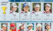 ‘골프광’으로 유명한 도널드 트럼프 미국 대통령(71)이 프랑스 방문을 마친 뒤 향한 곳은 집무실이 있는 워싱턴 백악관이 아니었다. 자신이 소유한 18개의 골프장 중 하나이자 제72회 US여자오픈이 열린 미국 뉴저지주 베드민스터의 트럼프 내셔널 골프클럽이었다. 트럼프 대통령은 2라운드가 열린 15일부터 17일 최종 라운드까지 지켜본 뒤에야 백악관으로 돌아갔다. 그는 15번홀 주변에 마련된 전용 관전 시설에서 대선 슬로건인 ‘미국을 다시 위대하게(Make America Great Again)’ 구호가 적힌 빨간 모자를 쓰고 경기를 지켜봤다. 미국 선수의 우승을 바랐을 테지만 그가 기립박수를 보낸 상대는 ‘슈퍼 루키’ 박성현(24·KEB하나은행)을 비롯한 한국 선수들이었다. 박성현이 자신의 미국여자프로골프(LPGA)투어 첫 우승을 메이저대회인 US여자오픈 우승으로 장식했다. 박성현은 17일 트럼프 내셔널 골프클럽(파72·6762야드)에서 열린 4라운드에서 버디 6개와 보기 1개로 5언더파 67타를 쳤다. 첫날 58위였던 그는 최종 합계 11언더파 277타를 적어내 2위 최혜진(18)을 2타 차로 제치고 우승했다. 우승상금은 90만 달러(약 10억1500만 원)다. 한국 선수들의 대회 통산 9번째 우승. 1998년 박세리, 2005년 김주연, 2008년과 2013년 박인비, 2009년 지은희, 2011년 유소연, 2012년 최나연, 2015년 전인지의 뒤를 이었다. 14번홀까지 최혜진, 펑산산(중국)과 공동 선두였던 박성현이 15번홀에서 7m 정도 거리의 긴 버디 퍼팅을 집어넣어 단독 선두로 치고 나가자 트럼프 대통령은 자리에서 일어나 기립박수를 보냈다. 이날 가장 어렵게 세팅된 17번홀에서 두 번째 샷을 1.5m에 붙여 버디를 낚은 데 이어 18번홀(파5)에서도 파를 세이브해 승리를 결정지었다. 박성현이 스코어카드를 제출하기 위해 이동할 때 트럼프 대통령은 박성현을 향해 엄지손가락을 들어 보였다. 함께 경기를 지켜본 트럼프 대통령의 큰딸 이방카도 경기 후 자신의 인스타그램에 “당신의 재능과 끈기에 감명 받았다”는 글을 남겼다. 우승 직후 그린에서 어머니 이금자 씨와 포옹하며 눈물을 흘린 박성현은 기자회견에서는 “전혀 실감이 안 난다. 구름 위를 떠가는 기분이다”라며 미소를 지었다. 그는 “지난해의 경험 덕분에 오늘의 우승이 나온 게 아닌가 싶다”고 말했다. 박성현은 지난해 같은 대회 마지막 날에도 우승 경쟁을 벌였으나 18번홀에서 친 세컨드샷이 워터 해저드에 빠지면서 아쉽게 연장전에 들어가지 못했다. 박성현은 또 새 캐디 데이비드 존스와의 호흡도 우승 원동력으로 꼽았다. 박성현은 “18번홀에서 3번째 샷을 그린 뒤로 넘겼을 때 존스가 ‘항상 연습했던 거니까 믿고 편하게 쳐라’고 말해준 게 도움이 됐다. 연습했던 대로 샷이 나와 나도 놀랐다”고 말했다. 2013년부터 2015년까지 최나연의 캐디를 맡았던 존스는 지난해 9월 전인지의 에비앙 챔피언십 우승에도 힘을 보탰다. 이날 리더보드는 태극기의 물결로 가득했다. 우승 박성현, 준우승 최혜진을 필두로 세계 랭킹 1위 유소연과 허미정이 7언더파 281타로 공동 3위에 자리했다. 이정은이 공동 5위에 올랐고, 김세영 이미림 양희영 등 3명은 공동 8위에 자리했다. 상위 10명 중 8명이 한국 선수였다.이헌재 기자 uni@donga.com}