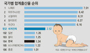 우리나라 합계출산율은 1.24명으로 세계 평균 2.52명의 절반에도 미치지 못하는 것으로 나타났다. 합계출산율은 가임여성 1인당 자녀수로 한국은 수년간 세계 최저 수준이다. 인구보건복지협회가 20일 유엔인구기금(UNFPA)과 함께 발간한 ‘2010 세계인구현황보고서’에 따르면 우리나라는 전체 186개국 가운데 홍콩(1.01명), 보스니아헤르체고비나(1.22명)에 이어 세번째로 출산율이 낮았다. 이 합계출산율은 과거 5년간 자료에 기반해 추정한 수치로 통계청이 주민등록인구로 계산한 1.15명(2009년 기준)과는 다소 차이가 있다. 우리나라 합계출산율은 2007년 1.19명, 2008년 1.2명, 2009년 1.22명으로 조금씩 증가하고 있다. 북한 출산율 역시 세계 133위인 1.85명으로 낮은 편이다. 낮은 출산율 탓에 올해 4850만 명인 우리나라 인구는 2025년 4948만 명을 정점으로 계속 줄어들어 2050년에는 4407만 명으로 감소할 것으로 전망됐다. 세계 인구 1위는 중국으로 13억5414만 명이며 인도(12억1446만 명), 미국(3억1760만 명), 인도네시아(2억3250만 명), 브라질(1억9540만 명) 순이었다. 하지만 2030년부터 인도의 인구가 14억8459만 명으로 중국 14억6246만 명을 추월할 것으로 예측했다. 우리나라 평균수명은 남성이 76.4세로 31위, 여성은 82.9세로 17위를 기록했다. 북한은 남성이 65.5세(118위), 여성이 69.7세(125위)였다. 최고 장수국은 남성은 아이슬란드(80.8세), 여성은 일본(86.6세)이었다. 최단명국은 남녀 모두 아프가니스탄으로 남성 44.7세, 여성 44.6세였다. 한편 이 보고서 중 한국은 의료인 분만 개조율이 100%로 1위를 차지했다. 이는 출산할 때 의료인의 도움을 받는 비율을 말하는 것으로 한국 산모들은 사실상 모두 병원에서 출산한다는 뜻이다.우경임 기자 woohaha@donga.com}