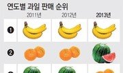 바나나가 3년 연속으로 ‘가장 많이 팔리는 과일’ 1위에 올랐다. 롯데마트가 6일 발표한 지난해 과일 매출 순위에서 바나나는 전체 과일 매출액 중 10.4%를 차지해 가장 인기 있는 과일로 꼽혔다. 2위는 수박(10.0%)이었고 감귤 사과 딸기 등의 순이었다. 롯데마트는 바나나의 인기를 인구 고령화에 따른 것으로 분석했다. 바나나는 과육이 연해 치아가 좋지 않은 사람도 씹기에 편하다. 지난해 롯데마트를 찾은 50대 이상의 고객 비중은 전체의 22%였지만 바나나를 구매한 고객 중 50대 이상의 비중은 35%나 됐다. 50대 이상이 다른 연령대에 비해 바나나를 많이 샀다는 뜻이다. 다양하게 활용 가능하다는 점도 바나나 인기의 한 요인이다. 다이어트를 하는 젊은 여성들은 바나나를 식사 대용으로 활용한다. 바나나는 부모들이 아이들 간식으로 하나씩 주기에도 제격이다. 조미숙 이화여대 식품영양학과 교수는 “바나나는 칼로리에 비해 섬유질이 많아 공복감을 채워주는 데 도움이 되고 어린이나 노인들도 쉽게 소화할 수 있다”고 말했다. 바나나에 풍부하게 들어있는 칼륨과 무기질은 염분의 체외 배출을 촉진해 고혈압 환자에게 좋고 뇌중풍(뇌졸중) 예방에도 도움이 되는 것으로 알려져 있다. 바나나가 한국 과일 시장에서 판매량 1위가 된 것은 2011년부터다. 여름철 태풍과 이상기온 피해가 심했던 2011년에는 국내 과일 가격이 급등했다. 정부는 한시적으로 수입 바나나에 대해 8월과 9월 두 달간 관세를 면제했다. 이로 인해 바나나 매출이 급증했고 이후 1등 과일로 자리를 잡았다. 하지만 바나나 가격이 오르고 있는 것은 변수다. 지난해 바나나의 평균 도매가격은 kg당 1953원으로 2012년(1523원)보다 430원 올랐다. 이는 중국인들이 바나나 소비를 늘린 탓이다. 안세민 롯데마트 과일 상품기획자는 “바나나는 다른 과일에 비해 가격 경쟁력이 워낙 뛰어나서 가격이 조금 올라도 당장 소비가 줄지는 않을 걸로 본다”며 “앞으로 기존의 필리핀 이외에 스리랑카나 베트남 등에서 수입하는 물량을 늘려나갈 것”이라고 말했다. 한편 국내 과일 중에서는 수박이 12년 동안 판매량 1위를 지킨 감귤을 누른 것이 눈에 띈다. 이는 지난해 늦더위가 9월까지 이어지고 여름철 가뭄이 심했던 데 따른 것이다.한우신 hanwshin@donga.com·최고야 기자}