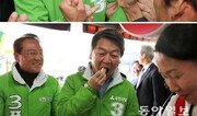 “철밥통 거대 양당이 병이 도져 ‘도와달라’고 다시 읍소를 한다.” 국민의당 안철수 상임공동대표는 4·13총선을 엿새 앞둔 7일 거리 유세에서 새누리당과 더불어민주당을 싸잡아 공격했다. 그는 전날 양당에 제안한 정당 대표 토론회에 대해 “양당 대표가 꿀 먹은 벙어리”라며 “자신이 없거나 공약이 엉터리여서 들킬까 제 발 저리는 것 아니겠냐”고 목소리를 높였다. 그러면서도 “손에 손을 잡고 꼭 (기호 3번에) 투표해 달라”고 지지를 호소했다. 안 대표는 이날 오전 출근 인사를 마친 뒤 수도권 동북부인 경기 남양주시를 시작으로 서울 동작구까지 하루 동안 11개 선거구를 돌았다. 수도권을 동쪽에서 서쪽으로 횡단하는 강행군이었다. 그는 “예전에는 제 성을 바꿔서 ‘강철수’라 부르던 분들이 이젠 이름 바꿔서 ‘안길동’(안철수+홍길동)이라고 부르신다”고 했다. ○ 安, 수도권 11곳 지원 유세 오전 7시. 안 대표는 서울 노원구 상계동 자택을 나오며 “이제 6일 남았네요”라고 말했다. 앞서 부인인 김미경 서울대 교수도 지역구를 비운 안 대표를 대신해 노원병 선거운동에 나섰다. 안 대표는 지하철 7호선 수락산역에서 출근 인사로 하루를 시작했다. 다른 후보 선거운동원에게도 일일이 악수를 청했고 한 시간 반가량 출근하는 시민들과 눈을 마주치며 인사를 건넸다. 목이 쉰 탓에 틈틈이 목청을 가다듬기도 했다. 안 대표는 “몸이 힘들지만 그래도 머리가 아픈 것보다는 낫다”며 “이게 더 체질에 맞는다”고 했다. 최근까지 당 대 당 통합과 수도권 연대를 놓고 천정배 대표, 김한길 의원과 신경전을 벌였던 것처럼 당내 갈등보다 몸이 힘든 선거가 낫다는 의미로 들렸다. 안 대표는 경기 남양주 유세를 마친 뒤 기자들과 만나 김종인 더민주당 비상대책위원회 대표를 향해 “남 탓 하지 않으면 좋겠다”고 했다. 김 대표가 이날 라디오 인터뷰에서 “안 대표가 정상적 사고를 한다고 생각하지 않는다”고 한 데 대한 반박이었다. 더민주당 문재인 전 대표의 호남 방문 계획에 대해선 “특별히 드릴 말씀이 없다”며 말을 아꼈다. 당내에서는 야권 대선 후보 1위를 달리는 문 전 대표가 호남에서 반전을 꾀하지 않을까 경계하는 분위기도 있다.○ 安 “정당 투표는 3번, 흐름 퍼져” 주장하지만… 안 대표는 이날 유세장으로 이동하는 차에 동승한 기자에게 “마지막까지 어쨌든 진심을 전달하고 결과를 받아들여야 한다”면서도 “지역구 후보를 찍는 것과 별개로 ‘정당 투표는 3번으로 하자’는 게 더민주당이나 새누리당 지지자 사이에서 퍼져 나가고 있는 것 같다”고 했다. 또 “초기에는 별로 안 보였는데 선거운동 후반으로 갈수록 갓난아이 엄마들이 (유세장) 곳곳마다 늘었다”며 “어린아이의 미래를 위해 변화해야 된다는 것 아니겠냐”고 했다. ‘주말에 지역구를 지키느냐’고 묻자 그는 “어떻게 노원에만 있을 수 있겠냐. 어떻게 제 선거만 치르겠냐”며 “아마 수도권을 지역구로 두고 자기 선거 치르면서 전국 유세를 하는 당 대표는 제가 처음일 것”이라고 말했다. 자신의 지역구인 서울 노원병 승리에 대한 자신감과 함께 수도권 선거에 대한 절박함이 동시에 묻어났다. 호남을 제외한 지역에선 안 대표를 제외하고 국민의당 후보가 우위를 점한 지역이 거의 없는 만큼 ‘국민의당=호남당’이라는 공식에서 벗어나기 위한 몸부림인 셈이다. 자칫 예상과 달리 지역구 사수에 실패할 경우 안 대표는 최대 정치적 위기에 빠질 수밖에 없다. 안 대표는 빠듯한 일정 탓에 차 안에서 김밥과 빵으로 점심 식사를 해결했다. 차 안에는 목이 쉰 안 대표에게 지지자들이 건넨 목캔디 등이 놓여 있었다. 그는 “참 마음이 짠해요, 정말 이런 기대를 저버리면 안 되는데…”라고 말끝을 흐렸다. 안 대표는 “이번 선거에서 20석 이상을 못 넘길 경우 국민 눈높이에 맞는 책임을 지겠다”고 여러 차례 공언했다. ‘연설이 늘었다’고 하자 그는 “요령을 배우지도 않고 혼자서 ‘막연설’을 하고 있다”며 웃었다. 그는 이날 오후 6시 넘어서까지 다른 후보들 지원 유세를 한 뒤에야 자신의 지역구로 향했다. 남양주=황형준 기자 constant25@donga.com}