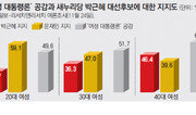 “40대 여성의 마음까진 돌렸는데 20, 30대 여성은 응답이 없네.” 새누리당 박근혜 후보가 내세운 ‘여성 대통령론’은 상당수 여성 유권자의 호응을 받고 있다. 이들이 지금 투표장에 간다면 박 후보에게 투표할 가능성은 얼마나 될까. 박 후보 측이 10월 중순 ‘여성 대통령은 그 자체가 최고의 정치쇄신’이라며 들고 나온 여성 대통령론의 주 타깃은 2040세대 여성이었다. 상대적으로 취약한 젊은층의 표심을 공략할 수 있는 포인트가 될 것이란 판단에서였다. 동아일보와 채널A가 24일 리서치앤리서치(R&R)에 의뢰해 실시한 여론조사를 보면 기존에 야권 성향이 더 강했던 40대 여성에선 여성 대통령론에 대한 공감이 박 후보에 대한 지지로 이어지는 경향이 드러난다. 40대 여성의 61.4%는 여성 대통령론에 공감했고, 46.4%는 박 후보를 지지한다고 답했다. 민주통합당 문재인 후보(39.6%)에 비해 6.8%포인트 앞서는 수치다. 여성 대통령론이 본격화되기 전인 10월 2일 조사에선 40대 여성의 박 후보 지지율은 40.3%로 문 후보(53.4%)에게 13.1%포인트 뒤졌다. 하지만 20, 30대 여성에선 괴리가 컸다. 20대 여성 중 여성 대통령론에 공감한 응답자는 49.6%였지만 박 후보에 대한 지지는 27.7%에 머물렀다. 여성 리더에 대한 기대는 있지만 이 중 절반 가까이가 그 인물이 박 후보라는 점에는 부정적인 셈이다. 30대 여성에서도 여성 대통령론에 대한 공감은 51.7%, 박 후보 지지는 36.3%로 나타났다. 문 후보에 대한 지지는 20대 여성에선 59.1%, 30대 여성에선 47.0%로 조사됐다. 박 후보 측은 이에 따라 여성 대통령론을 2030세대 여성의 실제 표심으로 연결시키기 위한 전략에 골몰하고 있다. ‘성폭력, 학교폭력, 가정파괴범, 불량식품의 4대악 척결’ 등 어머니 리더십을 강조하는 등 여성에게 다가서기 위한 보육 및 교육 정책을 제시했지만 젊은 여성층의 마음을 사로잡으려면 ‘플러스알파’가 있어야 한다는 것. 한 관계자는 “2030 여성들이 관심 가질 일자리 정책을 조만간 내놓고 여성인력 양성 공약도 보완하는 것을 검토하고 있다”고 말했다.홍수영 기자 gaea@donga.com}