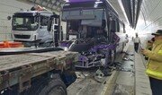 22일 오전 11시 35분경 강원 횡성군 영동고속도로 강릉 방향 둔내터널에서 버스 2대, 트레일러 1대, 승용차 2대가 연쇄 추돌해 3명이 다쳤다. 경찰에 따르면 터널 내 공사로 인해 차들이 서행하는 가운데 관광버스가 앞서가던 트레일러를 들이받으면서 연쇄 추돌이 발생했다. 이 사고로 관광버스 운전사 박모 씨(60)와 승용차 탑승자 등 3명이 중경상을 입어 인근 병원에서 치료 중이다. 사고 당시 터널에서는 2018 평창 겨울올림픽에 대비한 보수 공사 때문에 2차로를 막고 1차로만 통행이 가능한 상태였다. 경찰은 정확한 사고 경위를 조사 중이다. 한편 지난달 11일 인천 방향 둔내터널 인근에서는 고속버스가 스타렉스 승합차를 들이받아 승합차에 타고 있던 70, 80대 할머니 4명이 숨지고, 4명이 다치는 사고가 발생했다. 횡성=이인모 기자 imlee@donga.com}