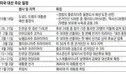 18일 미국 남부 플로리다주 올랜도 암웨이센터에서 열리는 도널드 트럼프 대통령의 재선 출정식을 시작으로 2020년 미 대선의 본격적인 막이 오른다. 민주당도 26, 27일 플로리다주 마이애미에서 대선주자 TV토론회를 열고 후보 20명이 다투는 경선을 시작한다. 공화당과 민주당이 핵심 경합지 플로리다주에서 시작부터 맞붙는 셈이어서 전 세계의 관심을 모으고 있다.○ 플로리다의 ‘결전’ 트럼프 대통령은 15일 트위터에 “‘트럼프 경제’는 기록들을 만들어가고 있다. 2020년 내가 아닌 다른 이가 집권하면 지금까지 본 적 없는 시장 붕괴가 일어날 것”이라며 “화요일(18일) 행사장은 꽉 찰 것이고 엄청난 날이 될 것!”이라고 밝혔다. 지난 대선에서 ‘미국을 다시 위대하게(Make America Great Again)’란 구호로 쏠쏠한 재미를 봤던 그는 재선 구호로 ‘미국을 계속 위대하게(Keep America Great)’를 내세웠다. 그는 앞선 트윗에서는 미국인들이 트럼프 정권의 일자리 성과에 만족하고 있으며 자신의 재선 가능성이 높다는 보수성향 매체 OANN(One America News Network) 보도를 인용했다. 이어 “부정직하고 국가를 파괴하려는 사람들이 역대 최대 ‘대통령 괴롭히기’에 나섰지만 여론조사에서 2016년 대선 때보다도 훌륭한 성과를 내고 있다”며 재선에 대한 자신감을 드러냈다. 간접선거인 미 대선에서 플로리다주는 538명의 대통령 선거인단 중 캘리포니아(55명), 텍사스(38명)에 이어 뉴욕주와 함께 세 번째로 많은 29명의 선거인단을 보유했다. 트럼프 대통령은 출정식에서 부인 멜라니아 여사, 마이크 펜스 부통령 부부와 연단에 올라 경제성과를 소개하고, 재선 포부 및 정책 방향 등을 밝힐 예정이다. 2만 명을 수용할 수 있는 행사장(암웨이센터)에 벌써 7만4000명이 입장을 신청해 흥행을 예고했다. 현직 대통령인 그가 사실상 대선 후보로 확정된 공화당과 달리 민주당은 무려 20명이 각축을 벌이고 있다. 당초 24명이 나섰지만 이달 말 첫 TV토론을 앞두고 후보 4명이 6만5000명의 후원자 확보 혹은 지지율 1% 이상이란 조건에 미달해 이미 탈락했다. 최종 후보가 확정되는 내년 7월까지 모두 12번의 TV토론을 통해 후보군이 좁혀질 것으로 보인다. 조 바이든 전 부통령이 지지율 1위를 달리고 있고 버니 샌더스, 엘리자베스 워런, 카멀라 해리스 상원의원 등이 뒤를 쫓고 있다.○ ‘선거 풍향계’ 아이오와 코커스 주목 50개 주에서 순차적으로 진행되는 각 당의 경선은 내년 2월 3일 아이오와주 당원대회(코커스) 대의원 선출로 시작된다. 양당 모두 6월 초까지 전국을 순회하며 코커스 및 주별 예비경선(프라이머리) 일정을 진행한다. 코커스는 당원들이 선거구별로 학교나 교회 같은 공공장소에 모여 토론하고 후보자별 지지 그룹을 형성해 대의원을 뽑는 방식이다. 반면 프라이머리는 당원뿐 아니라 일반 주민도 등록만 하면 투표가 가능하다. 지지율로 대의원을 배분할지, 승자독식 방식으로 승리한 후보에게 대의원을 몰아줄지는 주마다 다르다. 이 중 ‘선거 풍향계’로 불리는 내년 2월 3일 아이오와주의 첫 코커스가 최대 관심이다. 난립하는 후보군이 4, 5명 안팎으로 정리되면서 향후 선거 결과에 큰 영향을 미치기 때문이다. 이어 같은 달 11일 뉴햄프셔주 프라이머리에서 후보가 1, 2명 안팎으로 압축될 가능성이 높다. 코커스와 프라이머리를 거쳐 승리한 후보는 내년 여름 전당대회에서 대통령 후보로 공식 지명된다. 민주당은 내년 7월, 공화당은 8월에 각각 전당대회를 연다. 이후 11월 3일 선거인단 538명의 투표로 당선자가 확정될 때까지 양당 후보의 치열한 선거운동이 펼쳐진다.워싱턴=이정은 특파원 lightee@donga.com}