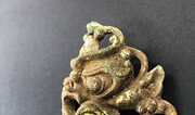 경북 경주시 황룡사(黃龍寺) 터에서 투조(透彫·금속판 일부를 도려내는 것) 기법으로 만든 통일신라시대의 금동 귀면(鬼面·사진)이 출토됐다. 불교문화재연구소는 올 7월 황룡사 터 시굴조사 과정에서 국내 최초로 금동 귀면을 찾아냈다고 4일 밝혔다. 이번에 발견한 금동 귀면은 15cm 높이로, 성인 손바닥만 한 크기다. 입에는 고리가 달렸고, 입체감이 돋보인다. 귀면은 사악한 무리를 경계하는 화신으로 사찰 법당 안팎에서 흔히 몸체가 없이 얼굴만 보이는 장식품이다. 불교문화재연구소는 “국내에 유사한 사례가 없어 지금은 정확한 용도를 확인할 수 없다”며 “장식품이거나 고리에 무언가를 걸었을 가능성도 있다”고 밝혔다. 이번 조사에서는 석불과 소조불, 용두 조각, 하대석 조각, 명문기와도 나왔다. 황룡사는 경주 도심에 있었던 구황동 황룡사(皇龍寺)와 다른 절로, 동대봉산(옛 은점산)에 있었다.유원모 기자 onemore@donga.com}