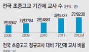‘학교에 변태가 들어온 것 아닌가요?’ 17일 오후 서울 양천구의 한 고등학교에서 일어난 ‘기간제 교사의 음란행위’ 사건을 촬영한 동영상을 보고 한 누리꾼이 남긴 말이다. 동영상에는 이 학교의 기간제 한문 교사로 학생들을 가르치던 이모 씨(55)가 3학년 여학생 교실 앞 복도에서 성기를 꺼내 손으로 잡고 흔드는 모습이 담겨 있다. “선생님으로서 결코 용납할 수 없는 행동”이라는 비판이 줄을 이었다. 고등학교 2학년 딸을 둔 주부 황모 씨(46·여)는 “이야기를 듣고 소설인 줄 알았다. 그런 사람이 지금까지 교단에 서 왔다는 것 자체가 믿기지 않는다”고 했다. 문제의 교사 이 씨는 대학을 졸업한 뒤 20년 가까이 기간제 교사로 교단에 섰다. 기간제 교사는 정규 교사의 휴직 등으로 학교에서 선생님이 필요할 경우 몇 개월 단위로 계약해 근무하는 임시 교사를 말한다. 사건을 수사 중인 서울 양천경찰서 관계자는 18일 “이 씨가 평소에 학생들에게 ‘내가 무술 유단자로 힘이 세다’는 뜬금없는 말을 하거나 수업시간에 갑자기 발차기를 하는 등 특이행동을 보이기도 했다”고 밝혔다. 경찰은 이날 이 씨의 구속영장을 신청했다. 이 씨는 2개월 전 아내와 별거에 들어갔으며 10대 후반의 딸이 있는 것으로 알려졌다. 이 씨뿐만 아니라 최근 일부 기간제 교사들이 비상식적인 행동으로 물의를 빚곤 했다. 지난달에는 충북 청주시의 한 중학교에서 담임을 맡은 기간제 교사가 자신의 통장 계좌번호가 적힌 명함을 학생들에게 나눠줘 논란이 일었다. 지난해 12월에는 경기 용인시의 한 고등학교 기간제 영어 교사가 기말고사 영어시험 문제 초안을 한 학생에게 건넸다가 적발됐다. 기간제 교사 채용 시스템에 문제가 있는 것이 아니냐는 지적이 제기되는 이유가 여기에 있다. 교육부에 따르면 최근 5년 동안 전국의 초중고교 기간제 교사 수는 2008년 1만8947명에서 2012년 3만8230명으로 두 배 이상으로 증가했다. 정규 교사 대비 기간제 교사 비율도 2008년 4.92%에서 지난해 9.87%로 4.95%포인트 늘어났다. 서울시교육청 관계자는 “출산으로 인한 휴직이 많이 발생하고 있는데 어떤 과목에서 휴직 교사가 생길지 예측할 수 없어 현실적으로 기간제 교사로 대체할 수밖에 없다”고 말했다. 기간제 채용과 관리는 전적으로 학교장 재량에 따라 이뤄진다. 기간제 교사를 채용할 때 전에 근무했던 학교에 문의해 근무 자세 등을 물어본 뒤 채용하도록 교육청에서 지침을 내리지만 법으로 정해진 절차가 아니기 때문에 교육청에서 단속하거나 강제할 수 없다. 학교장이 심사위원회를 구성해 면접을 거치고 수업 시연도 시키지만 실제 제대로 진행했는지에 대해서는 교육청의 감독 권한이 없다. 법적으로 기간제 교사의 채용, 관리 모두 학교장의 권한이다. 또 기간제 교사에 대한 평가 기록도 해당 학교만 보유하고 있다. 사건이 일어난 뒤 이 씨가 근무했던 학교들로부터 이 씨에 대한 평가를 받아본 서울시교육청 관계자는 “어떤 학교에서는 ‘학생들을 함부로 다뤄 문제가 있다’고 평가한 반면에 다른 학교에서는 ‘애들을 잘 가르쳤다’고 평가했다”고 밝혔다. 김동석 한국교원단체총연합회 정책본부장은 “모든 기간제 교사를 도매금으로 매도해서는 안 된다”면서도 “출산·육아 휴직 등으로 생기는 결원은 시간이 촉박한 상태에서 급하게 기간제 교사를 채용해야 하기 때문에 교사로서의 인성, 도덕성 등에 대한 검증이 미흡할 수밖에 없다”고 말했다. 올해 2월까지 서울의 한 중학교에서 기간제 교사로 일하다 최근 임용된 A 씨(27·여)는 “기간제 교사로 계약하기 전에 면접을 보면서 일주일에 두 번은 오후에 남아 공부방을 지도해야 한다는 조건을 걸어 받아들여야만 채용을 하겠다고 했다”며 “정규 교사는 신규 연수를 받으며 교육자로서의 자세에 대한 내용도 연수를 받지만 기간제 교사는 그런 연수 없이 바로 현장에 투입되고 있다”고 말했다.박희창·주애진 기자 ramblas@donga.com}