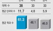 여기 두 대학이 있다. 하나는 18개 단과대(100개 학과)에 재학생은 2만3000여 명, 다른 한 곳은 단과대 5개(38개 학과)에 학부 재학생은 6700여 명(지난해 기준). 전자는 국내 지방의 한 사립대. 후자는 미국의 하버드대다. 국내의 이 사립대는 교육부의 정원감축 계획에 대비해 반년 전부터 구조조정 계획을 마련해 학과 통폐합에 나섰지만 교수진 등 학내 반발로 제대로 실행조차 못하고 있다. 동아일보가 한양대 배영찬 교수팀과 국내외 대학들의 학과 편성 및 학사과정 등을 분석한 결과 국내 사립대가 외국 명문대에 비해 지나치게 비대한 것으로 나타났다. 국내 사립대 평균 학과 수는 61.3개로, 미국(48.1개) 영국(46개)의 사립대 평균 학과 수보다 10개 이상 많았다. 반면 국공립대 학과 수(77.5개)는 미국의 국공립대에 해당하는 주립대(80.5개)보다 적었다. 국공립대는 지역 거점대학으로 육성해 대형 종합대로 키우는 한편 사립대는 강소형 특성화 대학으로 발전시킨다는 교육 당국의 구상과 역주행하는 셈이다. 학과 편성도 문제로 나타났다. 국내 사립대의 건축학 신문방송학 교육학 관련학과 보유비율은 외국 사립대보다 30%포인트 이상 높았다. 영어 관련학과 보유 비율에서도 국내 사립대는 94.7%로, 영어를 모국어로 쓰는 미국 영국 사립대(81.8%)보다 높았다. 반면 기초학문인 철학 물리학 화학 관련학과 보유 비율은 외국 사립대보다 낮았다. 중구난방으로 학과를 개설하다 보니 학생들은 학교 간판만 바라보게 되고 결국 전공은 부차적인 문제로 밀려나기 일쑤다. 서울의 한 유명 사립대의 최근 3년(2011∼2013년) 학과별 취업 현황 자료에 따르면 신문방송학과의 경우 3년 동안 취업에 성공한 91명 가운데 전공 관련 취업자는 16명(17.6%)에 불과했다. 배 교수는 “이 같은 상황을 더이상 방치해선 안 된다. 지금이야말로 강도 높은 학과 통폐합 등을 통해 정원 감축과 학과 구조조정의 두 마리 토끼를 잡아야 할 때”라고 강조했다.신진우 기자 niceshin@donga.com}