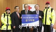 삼성그룹은 서울 중구 대한적십자사 본사에서 유종하 총재(왼쪽)와 삼성사회봉사단 이창렬 사장(오른쪽)이 참석한 가운데 재해구호요원 활동장비 구입자금 5억 원을 9일 전달했다. 삼성은 2005년부터 이재민에게 필요한 장비는 물론 지난해부터는 재해구호 장비도 지원하고 있다.}