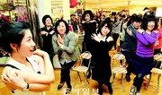 20일 서울 강남구 삼성동 현대백화점 무역센터점에서 매장 직원들이 아침조회 시간에 요가로 몸을 풀고 있다. 현대백화점 측은 “겨우내 추위로 굳은 몸을 풀고 산뜻한 마음으로 고객을 맞기 위한 것”이라고 설명했다. 양회성 기자 yohan@donga.com}