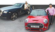 《 국내에서 ‘회장님 차’로 대변되는 롤스로이스를 타는 여성은 두 명으로 추정된다. 롤스로이스모터카 서울 청담전시장에서 “아내에게 줄 선물”이라며 사간 남성이 두 명 있었다는 게 근거다. 롤스로이스와 대조적인 차로는 ‘강남 아가씨 차’로 통하는 미니. 어울릴 것 같지 않은 조합인 ‘여성과 롤스로이스’, ‘남성과 미니’는 어떨지 본보 기자들이 체험해봤다. 》롤스로이스는 해외에서도 여기자가 시승한 사례는 거의 없다. 여성을 고객군으로 생각하지 않았기 때문이다. 그러나 이젠 달라졌다. 여전히 크지만 ‘고스트’보단 작고 날렵한 ‘레이스(Wraith)’가 지난해 10월 나왔기 때문. 그래서인지 인도에서 레이스 1대가 여성에게 팔렸다. 그래서 동아일보 강유현 기자가 국내 여기자 최초로 롤스로이스를, 그 중에서도 레이스를 타봤다. 강홍구 기자는 큰 덩치 때문에 소형차 시승을 잘 하지 않는 편이다. 최근 수입차업체들이 줄줄이 소형차를 선보인 와중에도 기자는 소형차에 높은 관심을 갖지 않았다. 그러나 7년 만에 나온 3세대 미니는 달랐다. “새로 나온 미니 쿠퍼가 어떤가”라는 지인들의 문의가 쇄도했다. 그래서 내실을 키워 돌아온 미니의 최상급 모델 ‘쿠퍼S’를 시승해봤다. 차체 길이 5629mm 레이스와 3850mm의 쿠퍼S. 둘 다 영국 태생이지만 ‘극과 극’인 두 차를 비교해봤다.“이보다 더 우아할 수 없어” vs “이보다 더 앙증맞을 수 없어” 레이스와 쿠퍼S는 존재만으로도 사람들의 시선을 사로잡기에 충분한 차다. 레이스가 길거리에 나타나자 행인들의 시선은 ‘패스트백’에 꽂혔다. 지붕에서 트렁크 끝까지 유선형으로 이어지는 형태를 뜻한다. 팬텀과 고스트 옆선이 남성의 다부진 어깨를 연상시킨다면 레이스는 여성의 매끈한 등을 연상시켰다. 전체적 형상은 미사일을 생각나게 했다. 보닛에서 지붕, 패스트백으로 이어지는 은빛 상반신, 아래를 떠받치는 남빛 하반신으로 구성된 투톤 컬러는 세련된 느낌이었다. 롤스로이스 엠블럼 ‘환희의 여신상’은 5도 앞으로 숙여져 있어 쿠페의 역동성을 강조한다. 레이스의 우아함은 차를 타고 내릴 때가 절정이다. 일반 차 문은 뒤가 열리지만 레이스는 앞이 열린다. 바로 ‘코치 도어’다. 몸을 가볍게 숙이며 문을 밀고 내리는 여성의 자태는 꽤 섹시할 듯하다. 문을 닫는 법은? 좌석 옆 ‘도어’ 버튼을 누르면 자동으로 닫힌다. 이제 쿠퍼S를 타볼까? 강홍구 기자는 신호등에 걸려 차를 세울 때마다 열어놨던 창문을 닫아야 했다. 옆 차로에 선 운전자들의 시선 때문이었다. 닫히는 창문 너머로 “저게 이번에 새로 나온 미니 쿠퍼인가 봐”라는 소리가 들려왔다. 개구리를 연상하게 하는 앙증맞은 외관 디자인은 3세대 모델에도 그대로 이어졌다. 앞뒤로 볼륨감이 넘치는 미니 쿠퍼의 외관은 당장이라도 차를 타고 떠나고 싶다는 생각을 들게 했다. 차체 크기도 이전 모델 대비 길이, 폭, 높이가 각각 98mm, 44mm, 7mm 늘어났다. 그러나 다양한 변화를 꾀한 내부 인테리어와 달리 3세대 모델의 외관 변화는 크지 않았다. 안전성 강화 차원에서 주간 주행등을 새로 장착하고 전면부 공기흡입구를 넓힌 정도다. 쿠퍼S는 2인 탑승에 최적화된 차였다. 실내 공간부터 눈길이 갔다. 평소 습관대로 운전석 위치를 조절하고 보니 뒷좌석에는 사람이 앉을 만한 충분한 공간이 나오지 않았다. 기자가 비교적 운전석을 넓게 사용하는 편임을 감안하고 좌석 위치를 앞으로 당겨 봐도 크게 다르지 않았다. 그러나 차량에 두 명만 탄다고 가정하면 상황이 180도 달라졌다. 운전석은 주행 중 불편함을 느끼지 않을 정도로 여유로운 편이었다. 이전 모델 대비 32% 늘어난 트렁크 공간(211L)도 두 명이 쓰기에는 부족함이 없었다. 다만 미니 쿠퍼의 좁은 전면 유리창은 중형 세단에 익숙한 운전자라면 불편할 수 있겠다는 느낌을 받았다. 전면 시야가 좁다 보니 횡단보도 앞에 차가 걸렸을 때 허리를 숙여 신호등을 보는 수고를 반복해야 했다.육중한 몸체의 섬세함 vs 앙증맞은 체구의 터프함 ‘워프터빌리티(waftability).’ ‘waft(공중에서 부드럽게 퍼지다)’와 ‘ability(능력)’의 합성어다. ‘마법의 양탄자 같다’는 뜻으로 롤스로이스의 승차감을 표현하는 단어다. 레이스의 가속 페달을 밟자 2360kg짜리 차체가 미끄러지듯 움직였다. 페달을 세게 밟으니 ‘우우웅∼’ 배기음이 낮게 깔렸다. 최고 출력이 624마력, 최대 토크가 81.67kg·m로 롤스로이스 중 가장 주행성능이 강력한데도 소음과 진동은 거의 없었다. 서울∼춘천고속도로에 진입하기 위해 올라탄 올림픽대로의 울퉁불퉁한 1차로에서도 진동이 거의 느껴지지 않았다. 전자식 에어 서스펜션이 탑승자 움직임을 감지해 평행을 유지해줬기 때문이다. 하이힐을 신고도 쉽게 운전할 수 있을 것 같았다. 가속 페달은 밟지 않고 까딱까딱 건드리기만 해도 차가 빠르게 달려 나갔다. 시속 100km에서 페달을 절반 정도 밟으니 약 2초 만에 150km로 올라갔다. 브레이크도 살짝 건드리기만 해도 속력이 줄었다. 레이스에는 RPM 대신 차에 남아있는 힘을 알려주는 ‘파워리저브(PR)’ 계기판이 있다. 시승 내내 이 눈금은 최고치 100에