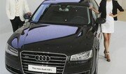 요하네스 타머 아우디코리아 사장이 올해 판매 목표로 2만5000대를 제시했다. 지난해 판매량인 2만44대보다 24.7% 증가한 수치다. 아우디코리아는 3일 대형 세단 ‘A8’의 부분변경(페이스리프트) 모델 ‘뉴 아우디 A8’을 선보였다. 타머 사장은 이날 서울 강남구 도산대로 ‘A8 아트플렉스’에서 열린 신차발표회에서 기자와 만나 “한국 수입차 시장이 매년 15∼20% 성장하고 있다는 점을 감안해 설정한 목표”라며 “이미 올 5월까지 1만808대를 팔아 지난해 같은 기간보다 40% 성장했다”고 강조했다. 앞서 경쟁사인 메르세데스벤츠코리아와 폭스바겐코리아는 올해 판매 목표가 3만 대라고 밝혔다. 그는 “한국 수입차 시장은 독일 고급차를 중심으로 성장하고 있어 아우디에 매우 중요하다”며 “올 초 선보인 소형 세단 ‘A3’는 물량이 달려 팔지 못할 정도였다”고 말했다. 아우디코리아는 하반기(7∼12월) 1.6L 디젤 엔진과 1.8L 가솔린 엔진을 장착한 모델을 추가로 들여올 계획이다. 이날 선보인 뉴 아우디 A8은 세계 최초로 ‘매트릭스 발광다이오드(LED) 헤드라이트’를 적용했다. 좌우 헤드램프가 각각 독립적으로 움직이는 25개의 LED 램프로 구성돼 있어 코너링 시 핸들을 꺾는 방향에만 밝기를 높인다. 다가오는 차량과 전방에 있는 차량을 동시에 8대까지 감지해 다른 운전자의 시야를 방해하지 않도록 램프가 움직인다. 차체는 100% 알루미늄으로 만들었다. A8 10개 모델 중 기본 모델인 ‘A8 50 TDI 콰트로’의 배기량은 2967cc, 최고 출력은 258마력, 최대 토크는 59.2kg·m, 연료소비효율(연비)은 L당 12.6km다. 1억2670만∼2억5310만 원, 모두 4륜구동이다.강유현 기자 yhkang@donga.com}