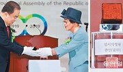 “우리는 또다시 민족사적으로, 세계사적으로 격변기 한복판에 서있습니다. 우리에게 가장 절실한 과제는 국민 통합입니다. 마음을 모아, 힘을 모아 새로운 100년을 향해 나아갑시다.” 문희상 국회의장은 10일 국회에서 열린 ‘대한민국 임시의정원 개원 100주년 기념식’ 행사에서 “대한민국의 지난 100년은 역경과 시련, 도전과 영광의 역사였다”며 이같이 말했다. 대한민국 임시의정원 수립 100주년을 맞아 우리 국민이 임시정부 수립 당시 보여주었던 통합과 단결의 필요성을 다시 한 번 강조한 것이다. 임시의정원은 대한민국 임시정부의 입법기관으로 임시정부보다 하루 앞선 1919년 4월 10일 중국 상하이에서 설립됐다. 국호를 대한민국으로 정하고 ‘대한민국은 민주공화제로 한다’를 제1조로 하는 대한민국 최초 헌법인 임시헌장을 채택, 공포한 기관이 바로 임시의정원이다. 100주년을 맞아 열린 이번 행사에는 문 의장을 비롯해 김원기 임채정 김형오 정세균 등 역대 국회의장과 이낙연 국무총리, 김명수 대법원장, 독립운동가 이동녕 선생 후손인 이경희 여사와 이회영 선생 후손인 이종찬 전 국가정보원장 등 500여 명이 참석했다. 이날 행사에서 문 의장은 임시의정원 마지막 의장을 지낸 만오(晩悟) 홍진 선생의 흉상 제막식을 통해 국민 통합 의지를 다졌다. 홍 선생은 임시정부와 임시의정원 탄생에 주도적 역할을 한 인물로 좌우익 세력을 통합해 통일의회를 꾸리는 데 앞장섰다. 충북 충주재판소 검사로 재직하던 홍 선생은 “일제 식민지 관리가 될 수 없다”며 1910년 검사직을 내려놓고 독립운동가를 변호하는 변호사로 활동했으며 1919년 3월 17일 한성정부 수립을 주도한 후에는 상하이로 망명해 한성정부 수립 사실을 널리 알려 상하이 임시정부 수립의 촉매가 됐다. 국회는 1967년 홍 선생의 손자인 석주 씨로부터 임시의정원 속기록과 의원 당선증 등 문서 1500여 점을 기증받으면서 홍 의장 기념전시실과 흉상 건립을 약속했다. 이후 기념전시실은 2010년 문을 열었지만 흉상 제작은 미뤄졌다. 지난해 11월 여야가 힘을 모아 ‘의회지도자(홍진)상 건립의 건’을 의결함에 따라 비로소 52년 만에 약속을 지키게 됐다. 대한민국 임시정부의 국새(國璽)격인 임시의정원 관인(官印)도 이날 고국의 품으로 돌아왔다. 홍 선생의 손자며느리인 신창휴(미국 이름 홍창휴·85) 여사는 이날 행사에 참석해 미국에서 보관하고 있던 관인을 문 의장에게 기증했다. 임시의정원 관인은 임시의정원이 광복 이후인 1945년 8월 22일까지 주요 공문서에 찍었던 도장이다. 임시정부 관인이 6·25전쟁을 치르며 분실됐기 때문에 사실상 대한민국 임시정부와 임시의정원의 정통성을 상징하는 국새나 다름없다. 격동의 현대사 속에서 관인을 온전히 관리해온 홍 선생의 유가족은 2월 방미 당시 자신들을 직접 찾아온 문 의장에게 기증을 약속했다. 문 의장은 “전해주신 유품들은 우리 국민 모두의 소중한 유산이자 항일 독립운동의 찬란한 역사가 될 것”이라며 감사를 표했다.강성휘 기자 yolo@donga.com}