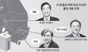 21대 총선이 1년 앞으로 다가오면서 여야 거물급 인사들의 대진표에도 관심이 쏠리고 있다. 가장 관심을 모으는 지역은 ‘정치 1번지’ 서울 종로. 현재 이곳에는 여야 대선 주자가 세 명이나 얽혀 있다. 여권에서는 임종석 전 대통령비서실장의 출마가 거론되지만 또 다른 잠재적 대선 주자인 정세균 전 국회의장과의 ‘교통 정리’가 필요한 상황이다. 당 안팎에서는 임 전 실장이 대선 주자로서의 ‘무게감’을 갖추기 위해서는 종로와 같이 상징적 지역에 나와야 한다는 의견도 있지만 이를 위해서는 현재 이곳을 지역구로 삼고 있는 정 전 의장이 종로 출마를 양보해야 하기 때문이다. 더불어민주당 관계자는 “정 전 의장 측이 최근 지역구 활동에 적극적으로 나서며 양보 의사가 없음을 분명히 하고 있다”고 전했다. 자유한국당에서는 황교안 대표가 서울 종로에 출마해야 한다는 주장이 제기되고 있다. 일각에서는 비례대표로 국회의원 배지를 단 뒤 안정적으로 당을 이끌어야 한다는 의견도 있지만 대선 주자로 체급을 올리기 위해서는 여권의 유력 주자와 맞붙어 경쟁력을 입증해야 한다는 요구가 더 크다. 서울 광진을은 추미애 전 민주당 대표가 또 다른 대선 주자 중 한 명인 오세훈 전 서울시장을 상대하는 대진표가 유력하다. 2월 한국당 전당대회에 나섰다가 고배를 마신 오 전 시장이 재기하려면 내년 총선에서 의미 있는 승리가 절실하다. 한국당 안에서는 오 전 시장이 서울 광진을에서 민주당 대표를 지낸 추 의원을 꺾는다면 대선 주자로서의 입지를 되찾을 수 있다고 보고 있다. 범여권 차기 대선 주자 선호도 1위를 달리는 이낙연 국무총리를 향해서는 ‘세종 출마설’이 피어오르고 있다. 여권에서는 이 총리가 5월이면 임기 2년을 채우는 만큼 올해 안으로는 당으로 돌아와 차기 총선 및 대권 행보를 밟을 것이란 관측이 커지고 있다. 민주당 관계자는 “이해찬 대표가 차기 총선 불출마를 선언한 상황에서 지방 분권의 상징인 세종에 어울리는 무게감 있는 후보로 이 총리만 한 인물을 찾기 쉽지 않다는 평가가 많다”고 했다. 또 다른 여권 대선 주자인 김부겸 전 행정안전부 장관은 얼마 전 여의도로 복귀한 이후 자신의 지역구인 대구 수성갑 다지기에 전념하고 있다. 여권 관계자는 “한국당의 텃밭인 대구에서 재선에 성공한다면 통합을 앞세우는 대선 주자로서의 행보에 더 큰 탄력을 받을 것”이라고 했다. 조국 대통령민정수석비서관의 부산 출마가 실현될지도 관심사다. 다음 총선과 대선 승리를 위해서 부산·경남(PK)의 표가 절실한 여권은 대중적 인지도가 높은 조국 수석의 부산 출마를 꾸준히 요구하고 있지만 정작 조 수석 본인은 출마에 부정적이다. 앞서 전재수 민주당 부산시당위원장은 11일 공개적으로 조 수석의 부산 출마를 요구한 바 있다.강성휘 기자 yolo@donga.com}