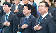 더불어민주당 김태년 노웅래 의원이 30일 차기 민주당 원내대표 선거 출마를 선언했다. 이로써 이인영 노웅래 김태년 후보(기호순)가 벌이는 수도권 3선들의 3파전 대진표가 확정됐다. 선거는 일주일 뒤인 8일 치러진다. 김 의원과 노 의원은 원내대표 경선 후보 등록을 마친 뒤 국회 정론관에서 각각 출마 기자회견을 열었다. 두 의원은 모두 내년 총선 승리를 핵심 공약으로 내걸었다. 김 의원은 “총선의 압도적 승리로 정치 지형을 바꾸지 않고는 국민이 바라는 개혁의 완성이 어렵다”고 했다. 당정청 관계에 있어서는 “당이 국민의 목소리를 잘 들을 수 있기 때문에 당이 중심에 서서 당정청의 정책을 만들고 집행해 가야 한다고 생각한다”며 당의 역할을 강조했다. 김 의원은 친문(친문재인) 핵심으로 꼽힌다. 원내대표 자리에 오를 경우 이해찬 대표와 함께 당 지도부의 친문 색채가 강화되는 것 아니냐는 질문에 김 의원은 “집권 여당의 역할을 제대로 수행하기 위해서는 지도부가 한목소리를 내는 게 바람직하다”고 답했다. 계파색이 상대적으로 옅은 노 의원은 “이번에도 뻔한 (친문 진영 중심의) 원내대표 선거가 되풀이된다면 국민에게 오만한 집단으로 낙인찍힐 것”이라며 “외연을 확대해야 총선에서 승리할 수 있다”고 했다. 2016, 2018년 각각 ‘김근태계’인 우상호 의원과 친문 홍영표 원내대표에게 패배한 노 의원은 계파 극복의 필요성을 강조했다. 노 의원은 “총선 승리에 ‘올인’한다는 각오로 원내대표 당락과 관계없이 현재 맡고 있는 국회 과학기술정보방송통신위원장 자리를 내려놓겠다”며 승부수를 띄웠다.강성휘 기자 yolo@donga.com}