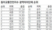 동아일보가 지방자치단체의 교통안전 문화 수준을 평가하기 위해 새롭게 ‘동아교통안전지수’를 개발해 산출한 결과 올해 아시아경기대회를 여는 인천시가 100점 만점에 77.24점으로 17개 광역자치단체 가운데 1위를 차지했다. 반면 전남도는 66.83점으로 최하위로 나타났다. 2012년 인구 10만 명당 교통사고 사망자 수는 전남이 23.93명으로 인천(7.31명)의 3배가 넘는다. 동아일보-채널A 교통안전 캠페인 ‘시동 꺼! 반칙운전’ 취재팀은 국토교통부와 교통안전공단이 집계하는 2013년 교통문화지수에 경찰청의 도움으로 지역별 ‘착한 운전 마일리지’ 가입자 비율을 더해 지자체별 동아교통안전지수를 만들었다. 이 지수는 횡단보도 정지선 준수율, 방향지시등 점등률을 비롯한 교통문화 수준 및 각종 교통사고 통계에 운전자의 자발적 교통 준법 의식 수준을 더한 교통안전 관련 종합지표다. 인천시에 이어 광역지자체 가운데 세종시가 2위(77.02점), 대구시가 3위(74.83점)를 차지했다. 상대적으로 교통 기반 여건이 좋은 광역시가 대체로 상위권을 차지한 반면에 하위권은 도 지역에 쏠렸다. 전남도가 최하위(17위)를 기록한 데 이어 전북도가 16위(67.26점), 충남도가 15위(68.04점)였다. 12일 경찰청 교통사고 가집계 현황에 따르면 지난해 교통사고 발생 건수와 사상자가 2012년에 비해 크게 줄어들었다. 2012년 5392명이던 교통사고 사망자는 지난해 5085명으로 5.69%(307명), 부상자는 지난해 32만8510명으로 2012년(34만4565명)에 비해 4.66%(1만6055명) 각각 줄었다. 지난해 교통사고 발생 건수는 21만6486건으로 2012년(22만3656건)보다 3.21%(7170건) 감소한 것으로 집계됐다. 꾸준히 상승 추세를 보이던 교통사고 발생 건수가 22만 건 밑으로 떨어진 건 2008년(21만5822건) 이후 5년 만이다. 취재팀은 6월 4일 전국 동시 지방선거를 앞두고 올 상반기 지자체별 교통안전 실태를 현장 르포로 집중 점검할 계획이다. 지자체의 대민(對民) 서비스 가운데 핵심적인 부분이 안전이고, 이 가운데 교통안전은 실생활에서 가장 밀접한 부문이기 때문이다.황인찬 기자 hic@donga.com}