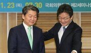 국민의당 안철수 대표와 바른정당 유승민 대표가 23일 양당 통합파의 연구모임인 ‘국민통합포럼’에 나란히 참석해 우호적인 분위기를 연출했다. 유 대표는 축사에서 “진지한 협력과 연대, 통합이 이뤄지기를 기대한다”고 말했다. 그러면서 “야권 전체가 협력할 부분을 찾아 연대하는 게 낫지만 자유한국당이 워낙 소극적이라 일단 바른정당과 국민의당이 정책과 선거까지 연대할 부분을 찾아보자는 취지에 공감한다”고 밝혔다. 안 대표는 “21일 의원총회에서 여러 이야기가 나왔지만 공통으로 공감한 건 정책연대다. 오늘이 그 시작점이다”라고 했다. 국민의당 싱크탱크인 국민정책연구원은 국민의당이 바른정당과 통합할 경우 통합 정당의 지지율이 19.2%로 한국당(11.7%)을 넘어선다는 외부 여론조사 결과를 공개했다. 한국당을 제치고 더불어민주당(47.5%)에 이어 2위로 나온 것. 야권을 대표하는 인물이 누구냐는 질문에는 유승민 대표(26.2%), 한국당 홍준표 대표(18.2%), 안철수 대표(14.5%), 김무성 한국당 의원(3.8%) 순으로 나타났다. 광주·전라에서는 야권을 대표하는 인물로 유 대표(24.5%), 안 대표(21.0%), 홍 대표(10.5%)를 꼽았다. 당 최대 지지 기반인 호남에서도 안 대표가 유 대표에게 뒤진 셈이다. 이번 여론조사는 국민정책연구원이 리서치앤리서치에 의뢰해 전국 유권자 1050명을 대상(95% 신뢰 수준, 표본오차 ±3.0%포인트)으로 이뤄졌다. 그러나 국민의당 장병완 의원은 안 대표와 의원 전원이 모인 바이버 대화방에 “통계적으로 무의미한 결과를 아전인수 격으로 해석했다”는 글을 올렸다. 최경환 의원도 “통합 같은 정치공학으로 마음을 얻는 시대는 지났다”고 했다.장관석 기자 jks@donga.com}