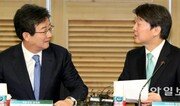 국민의당이 내부 노선 갈등에도 불구하고 바른정당과의 통합을 향한 양당 간 정책공조에 속도를 내고 있다. 국민의당 안철수 대표와 바른정당 유승민 대표는 23일 양당 통합파 의원들의 정책 연구 모임인 ‘국민통합포럼’에 참석할 예정이다. 두 사람이 대표 자격으로 동시에 이 포럼에 참석하는 것은 처음이다. 정책연대부터 시작해 선거연대, 당 대 당 통합까지 나간다는 구상에서 나온 행보로 보인다. 양당 통합파 의원들은 정책공조를 통해 공동으로 발의할 예산안 수정동의안에 대해 논의할 방침이다. 예산안 수정동의안은 의원 50명 이상이 발의할 수 있다. 국민의당 의원 40명과 바른정당 의원 11명을 합하면 공동 발의가 가능하다. 국민의당은 이르면 23일 국민의당과 바른정당의 연대 및 통합 수준의 선호도를 일반인 대상으로 파악한 여론조사 결과를 공개할 예정이다. 바른정당과 통합할 경우 지지율 상승효과가 있다는 점을 강조하려는 의도로 보인다. 안 대표는 기자들과 만나 “의원총회는 당의 결정기구는 아니다. 당의 의사결정 기구는 최고위, 당무위, 중앙위, 전당대회”라며 전(全) 당원 투표까지 고려하고 있음을 시사했다. 하지만 통합에 반대하는 호남 중진들의 반발은 거셌다. 박지원 전 대표는 라디오에서 “통합을 하면 여론조사에서 우리가 2당으로 올라간다는 (안 대표의 말은) 괴상한 논리이고, 구상유취(口尙乳臭·입에서 아직 젖내가 난다는 뜻으로 말과 행동이 유치함을 일컬음) 하다”고 비판했다. 반안(반안철수) 모임인 ‘평화개혁연대’(가칭)도 의원 14명의 가입 서명을 받는 등 본격적인 활동 준비를 하고 있다. 친안(친안철수) 그룹의 한 의원은 반대파 의원들을 향해 “이렇게 똘똘 말아가지고 가는 게 친노(친노무현)랑 똑같다”고 비판했다.최고야 best@donga.com·장관석 기자}