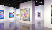 “붓대 들고 있다 씩 웃고 간다.” 한묵 화백(1914∼2016·사진)은 2012년 백수(白壽·99세)에 생애 처음 발간했던 화집에서 자신의 인생을 이렇게 정리했다. 당시 그는 화가로서 행복했냐는 질문에 “난 죽음 가운데에 있고, 그러면서 살고 있다. 때가 오면 가는 것이고 심각할 게 없다”고 했다. 4년 뒤 2016년 11월 한 화백은 프랑스 파리 생투앙 병원에서 숙환으로 생을 마감했다. 서울 중구 서울시립미술관 서소문 본관에서 한 화백의 첫 유고전 ‘한묵: 또 하나의 시(詩)질서를 위하여’가 열리고 있다. 1950년대부터 1990년대까지 연대기별로 작품 130여 점을 선보인다. 1970∼90년대 드로잉 37점은 국내에 처음 소개하는 작품. 10년에 한 번가량 개인전을 열 정도로 노출이 적었던 한 화백은 이번 유고전이 개인전으로 최대 규모다. 한 화백은 어린 시절 아버지로부터 동양화를 배우고, 10대 후반부터 서양화에 관심을 가졌다. 만주, 일본에서 유학을 하고 금강산에도 머물며 작업을 했다. 이때 이중섭 화백과도 절친하게 지내, 그가 병상에 있을 때 마지막까지 곁을 지켰다고 알려진다. 이후 미대 교수 생활을 하다가 1961년 프랑스로 떠나 조용히 작품 활동을 했다. 그는 1969년 아폴로 11호의 달 착륙을 목격한 무렵 작품세계에 급격한 변화를 맞았다. 1972년 판화 공방에서 동판화 작업을 시작하면서, 컴퍼스와 자를 이용한 기하학적 추상화를 그렸다. 우주에 관심이 많았다는 한 화백은 “2차원인 화폭에 3, 4차원을 담는 고민을 했고 그것이 일생의 화두가 됐다”고 했다. 그 결과 나온 것이 1970년대 대규모 작품들이다. 작품만 보면 1960년대에도 있었던 ‘옵아트’와 큰 차이가 보이진 않는다. 옵아트는 보색대비나 규칙적인 기하학적 형태의 배열을 통해 착시 효과를 일으키는 예술. 대표적인 작가로 브리짓 라일리가 꼽힌다. 다만 한 화백 작품에선 타지에서 고유의 시각언어를 찾으려는 절실함이 배어난다. 전시를 기획한 신성란 큐레이터는 “한국에서의 활동이 많지 않아 대다수 관객은 이런 작품이 있었다는 것 자체를 신선하게 느낀다”며 “돈이나 명예와 상관없이 작업했던 작가이기에 ‘맑은 기운’을 받아간다는 반응도 많았다”고 전했다. 3월 9일 열리는 학술 심포지엄에서는 한 화백 작품의 미술사적 의미를 짚어 보는 시간도 갖는다. 3월 24일까지. 무료. ▼ 佛서 함께 활동한 이응노 30주기… 인사아트센터 ‘원초적 조형본능’전 ▼ 한편 서울 종로구 인사아트센터에서는 또 다른 화가 고암 이응노 화백(1904∼1989)의 ‘원초적 조형본능’전이 열린다. 이 화백은 올해 프랑스로 건너간 지 60년, 작고 30년을 맞는다. 1957년 미국 뉴욕에서 열린 ‘한국현대미술전’을 통해 뉴욕현대미술관(MoMA)에 작품이 소장된 것을 계기로 이듬해 프랑스로 건너갔다. 이번 전시는 1960, 70년대 ‘문자 추상’ 작업을 중심으로 70여 점을 선보인다. 이 화백은 프랑스로 간 직후 파리 화단에서 유행했던 콜라주 기법을 활용해서 폐자재에 수묵 담채로 그림을 그렸다. 동양인으로서의 정체성을 살려 한자와 한글을 접목한 수묵, 유화, 태피스트리 등 ‘문자 추상’으로 발전시킨 것이 특징이다. 전시는 장르와 매체를 자유롭게 넘나든 이 화백의 열정을 보여준다. 다음 달 10일까지. 3000원. 김민 기자 kimmin@donga.com}