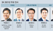 SK그룹이 3일 사장단 인사를 발표했다. 주력 관계사 최고경영자(CEO) 대부분이 유임됐고, 신규 선임 임원 규모는 지난해보다 소폭 줄어드는 등 변화보다는 안정에 무게를 뒀다. 다만 바이오·반도체·소재 관련 사업에서 신규 임원 승진자가 집중되는 등 그룹의 미래 성장사업에서 능력이 검증된 인재들을 과감하게 발탁했다. SK그룹은 3일 수펙스추구협의회를 열고 각 관계사 이사회를 통해 결정된 임원 인사 및 조직 개편안을 최종 협의해 발표했다. SK그룹은 “내년부터 SK는 ESG(환경·사회·지배구조) 경영을 바탕에 두고 고객과 투자자 등 이해관계자에게 비전과 성장 전략을 제시해 신뢰를 얻는 ‘파이낸셜 스토리’를 본격적으로 추진할 것”이라고 밝혔다. 박정호 SK텔레콤 사장이 SK하이닉스 부회장을 겸직하며 승진했다. 박 신임 부회장은 SK하이닉스 인수, 일본 도시바 메모리사업 지분 인수, 인텔의 낸드플래시 사업부 인수 등 굵직한 인수합병(M&A)을 주도했다. 그룹 내에서 정보통신기술(ICT) 및 반도체 관련 최고 전문가로 꼽힌다. SK는 박 신임 부회장이 하이닉스의 조직문화 개편 및 인수합병 등 굵직한 현안을 챙기고, 인텔 출신 반도체 전문가인 이석희 SK하이닉스 대표이사 사장이 구체적 사업 현안들을 맡으면서 시너지를 낼 것으로 기대하고 있다. 에너지 사업 및 협상 관련 최고 전문가로 꼽히는 유정준 SK E&S 사장도 부회장으로 승진했다. 2013년 SK E&S 대표이사를 맡은 뒤 회사를 액화천연가스(LNG), 신재생에너지 사업을 아우르는 종합 에너지 기업으로 성장시킨 성과를 인정받았다. SK 측은 “ICT, 에너지 등 그룹 주력 사업의 전문경영인을 부회장으로 승진시켜 경쟁력 강화를 주문한 것”이라고 설명했다. SK그룹 최고 의사결정기구 수펙스추구협의회 조대식 의장도 3연임에 성공했다. 바이오·반도체 소재 등 SK 미래 성장 동력을 발굴하고 성장시킨 성과를 인정받았다. 주력 CEO 체제를 강화하며 안정을 꾀했지만 과감한 발탁 인사도 눈에 띈다. 특히 46세 최고경영자(CEO)가 탄생해 주목을 받았다. 1974년생인 추형욱 SK㈜ 투자1센터장이 SK E&S 사장으로 선임된 것이다. 임원 선임 3년 만에 사장으로 승진하며 1998년 최태원 회장 취임 후 역대 최연소 사장이 됐다. 추 신임 사장은 유 신임 부회장과 함께 SK E&S 공동대표를 맡게 된다. SK 관계자는 “능력과 성과를 중시하는 SK 인사 철학이 반영된 것”이라고 말했다. 2017년부터 SK경영경제연구소를 이끌고 있는 염용섭 소장도 사장으로 승진했다. 이번 인사에서 신규 임원 선임은 총 103명이며 평균 연령은 48.6세다. 여성 임원은 최소정 SK텔레콤 구독상품담당(38) 등 총 7명이 신규 선임됐다. 신규 선임 임원 중 최연소인 최 담당은 온라인동영상서비스(OTT) 웨이브, 음원 플랫폼 플로(FLO) 등 젊은층 사용자가 많은 SK텔레콤의 구독형 서비스를 총괄하는 업무를 맡는다. 수펙스추구협의회에도 변화를 줬다. 우선 지배구조 투명성을 높이기 위해 거버넌스위원회를 신설했다. 위원장은 수펙스추구협의회 자율·책임경영지원단장 및 법무지원팀장을 맡고 있는 윤진원 사장이 맡는다. 또 에너지·화학위원회를 없애고 환경사업위원회를 신설했다. 환경사업위원회 위원장은 김준 SK이노베이션 총괄사장이 선임됐다.서동일 dong@donga.com·홍석호 기자}