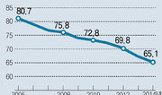 식습관의 서구화와 소득 증가 등으로 한국인의 1인당 육류 소비량이 지난 30년 사이에 4배 가까이로 늘었다. 13일 농림축산식품부의 ‘2014 농림수산식품 주요 통계’에 따르면 2013년 기준으로 우리 국민의 1인당 평균 육류 소비량은 42.7kg인 것으로 집계됐다. 한 사람이 하루에 고기를 약 117g 먹은 셈이다. 가장 소비량이 많은 것은 삼겹살로 대표되는 돼지고기(연간 1인당 20.9kg)였다. 닭고기(11.5kg)와 쇠고기(10.3kg)가 그 뒤를 이었다. 농식품부에 따르면 한국인의 연간 육류 소비량은 지난 33년간 약 3.7배(277.9%)로 증가했다. 1980년 11.3kg에 그쳤던 1인당 육류 소비량은 1990년 19.9kg, 2000년 31.9kg, 2010년 38.8kg 등으로 꾸준히 늘었다. 이 기간 동안 육류의 종류별 소비량 증가율은 닭고기 379.2%(2.4→11.5kg), 쇠고기 296.2%(2.6→10.3kg), 돼지고기 231.7%(6.3→20.9kg) 순이었다. 고기 소비량이 늘면서 한 사람이 하루에 고기 섭취로 얻는 에너지도 1980년 91Cal에서 2012년 246Cal로 늘었다. 반면 쌀 소비는 매년 줄어 같은 기간 동안 쌀로 섭취하는 에너지는 1234Cal에서 790Cal로 감소했다. 이처럼 한국인의 고기 섭취량이 늘어난 것은 식습관이 서구화되고 소득이 높아진 데다 외식 산업이 발전하면서 육류를 취급하는 음식점이 증가한 데에 따른 것으로 풀이된다. 한편 육류 수요가 높아지면서 수입량도 늘어나 1980년 97.8%였던 육류 자급률은 2013년 72.8%로 내려갔다.김유영 기자 abc@donga.com}