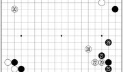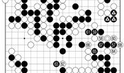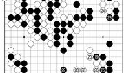 흑 ⊙로 백 대마를 필사적으로 잡으러 간 상황. 하지만 백은 이 대마를 꼭 살려야겠다는 의지가 없다. 백 14로 한 번 운을 떼 본다. 흑이 15로 결연한 의지를 내비치자 백 16으로 흑 석 점을 선수로 잡는 정도에서 대마를 포기했다. 흑 17은 손 뺄 수 없다. 참고 1도처럼 꽃놀이패가 난다. 백은 18로 단수하고 20으로 젖혀 하변을 정리하면서 우세를 확신하고 있다. 일찌감치 좌상 흑 대마를 잡은 것이 크고 좌하 쪽 집도 짭짤하다. 백 20도 현명한 수. 백이 쓸데없이 욕심을 내 참고 2도 백 1로 잡으러 가다간 외려 낭패를 본다. 흑 16까지 흑 말이 살면 실리만 빼앗긴 셈이다. 좌하 흑을 살려준 뒤 백 26으로 반상 최대의 곳을 차지해 승부는 사실상 끝났다. 해설=김승준 9단·글=서정보 기자}