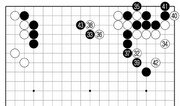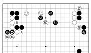 백 38까지 좌상 귀에서 우하 귀와 똑같은 정석이 재연됐다. 흑백만 바뀌었을 뿐이다. 그만큼 양걸침에 대해 응수할 때 인공지능이 거의 비슷한 계산법을 갖고 있다는 것을 보여준다. 전체적으로 흉내바둑과 비슷한 양상으로 국면이 흘러가고 있다. 흑 39로 이단 젖힌 수는 좌하 귀 모양을 정리하는 수법. 우하 귀처럼 참고도 흑 1, 백 2를 먼저 교환하고 갈 수도 있다. 흑 11까지 선수한 뒤 13으로 상변에 뛰어드는 진행이 예상된다. 이것 역시 서로 팽팽한 포석이다. 하지만 흑은 백 42까지만 응수시킨 뒤 돌연 43으로 끊어갔다. A로 단수하면 흑 돌이 잡히는데 굳이 끊어간 이유는 무엇일까. 또 B로 둬서 좌하 귀 모양을 결정짓지 않은 것은 왜일까. CGI가 좌변에서 미묘한 뒷맛을 살리는 방정식을 풀려 하고 있다. 해설=김승준 9단·글=서정보 기자}
