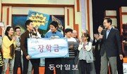 이명박 대통령이 지난달 27일 서울 여의도 KBS에서 진행된 ‘꿈의 기업 입사 프로젝트 스카우트’ 녹화방송에 특별심사위원으로 깜짝 출연해 우승자에게 장학금을 전달한 뒤 웃고 있다. 이날 녹화분은 3일 방영된다. 청와대 제공}