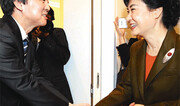 새누리당 박근혜 대선후보가 10일 대선후보 경선 과정에서 대립각을 세웠던 김문수 경기도지사를 만나 협력을 요청하는 등 통합 행보를 재개했다. 박 후보는 이날 경기도청으로 김 지사를 찾아 경기도의 일자리 창출 소식을 언급하며 “지사님이 자랑스럽다”고 추어올렸다. 김 지사도 “경제도 어렵고, 일본이나 중국 관계도 어렵고 국민들도 불안해하는데 경륜도 있고 안정감을 주는 지도자가 나와야 한다”고 덕담을 건넸다. 이어 “저는 선거법상 암만 마음에 있어도 말을 못하게 하니 어렵다. 도 닦는 기분으로 말을 참고 있다”고 웃으며 말하자 박 후보는 “감사하다”고 고마움을 전했다. 김 지사는 “대통령이 되면 소소한 것은 지방에 권한을 많이 달라”고 건의했다. 이에 박 후보는 “지자체에서 할 일을 굳이 중앙에서 할 필요 없다”며 동의했다. 김 지사가 바로 “대통령 되기 전에는 다 그렇게 한다고 하더라”고 하자 박 후보는 “제가 실천의 왕이지 않느냐”고 응수하기도 했다. 이어 두 사람은 10분 동안 단독 회동을 가졌다. 김 지사 측 관계자는 “박 후보가 당의 화합을 강조하며 협조를 요청하는 메시지를 전하지 않았겠느냐”고 말했다. 이후 박 후보는 ‘여성의 일 가정 양립’을 강조하는 정책 행보의 일환으로 도청 내 위기가정 보육시설인 ‘무한돌봄센터’와 24시간 방과 후 학교인 ‘꿈나무안심학교’를 둘러봤다. 홍수영 기자 gaea@donga.com}