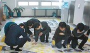 3일 강원도교육청 직원들이 1층 현관에 게시할 추념 현수막의 리본 모양 부분에 노란 손도장을 찍고 있다. 강원도교육청은 ‘4·16 세월호 참사 3주년’을 맞아 4월 한 달을 추념 기간으로 정하고 다양한 행사를 진행한다. 이인모 기자 imlee@donga.com}