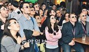 28일 저녁(현지 시간) 영국 런던의 한 술집에서 축구팬들이 LG전자의 시네마 3차원(3D) TV를 통해 맨체스터 유나이티드와 FC 바르셀로나의 유럽축구연맹 챔피언스리그 결승전을 보고 있다. LG전자는 이날 영국과 스페인에서 3D 안경 11만 개를 동원해 대규모 3D TV 체험행사를 펼쳤다. LG전자 제공}
