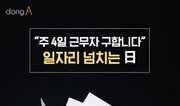 #1“주 4일 근무자 구합니다.”일자리 넘치는 日#2#3일본은 지금 유례없는 구인난에 시달리고 있습니다.일본 기업들은 ‘주4일 근무제 도입’ 등인재를 확보하기 위해 다양한 아이디어를 짜내고 있죠.인구가 줄어드는 와중에 아베노믹스로 일자리가 넘치자 생긴 현상이죠.#4‘주3일 휴식으로 사생활도 충실’일본 택배업체 사가와규빈은 3월 말부터 위와 같은 플래카드를 내걸고 도쿄(東京)와 야마나시(山梨)현에서 주4일 근무 택배기사 모집을 시작했다고 6일 밝혔습니다. 인터넷 쇼핑 활성화로 택배 물량이 급증하면서 인력 확보가 시급해졌지만 열악한 근무환경 탓에 지원자가 부족하자 근무여건 개선에 나서겠다고회사가 직접 선전하고 있는 것입니다.#5다른 업종의 분위기도 비슷합니다.일본 후생노동성에 따르면 4월 유효구인배율(구인자 수를 구직자 수로 나눈 비율)은 1.48배.1990년대 버블기를 넘어 43년 2개월 만에 가장 높았습니다. 도쿄는 2.07배로 구직자 1명당 일자리가 2개 이상입니다.#6#7반면 국내 상황은 일본과는 정반대의 모습을 보입니다.극심한 일자리 부족과 구조조정 바람 속에 직장인들은 유연한 근무는 꿈도 꾸지 못한 채 조직의 눈치만 보고 있는 경우가 많죠.장시간 근로는 당연한 것처럼 여겨지기도 합니다.한국 직장인들은 일주일에 평균 2.3일을 야근하고 있는데요.주 3일 이상 야근한다는 응답도 43.1%나 됩니다.*자료 출처: 대한상공회의소 ‘한국 기업의 조직건강도와 기업문화 종합보고서’ (2017년 3월)#8주 3, 4일 근무도 아직은 먼 얘기입니다. 조사에 따르면 국내 기업의 평균 근로일수는 주 5.3일이고 주당 근로일수가 6¤7일이라는 곳도 18.9%로 적지 않습니다. 또 평일과 휴일에 연장근로를 실시하고 있는 곳은 각각 43.5%, 32.9%에 이르죠. *자료 출처: 고용노동부 ‘근로시간 운용 실태조사(2016년)’#9 “고용 경직성 때문에 기업들이 위기에 대비해 평소 인력을 빡빡하게 운영하는 점도 직장인들의 업무 부하를 높이고 있다.”-국내 재계 관계자원본: 장원재 도쿄 특파원사진출처: 픽사베이기획·제작: 김재형 기자·김한솔 인턴}