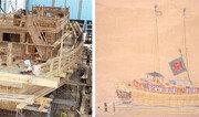200년 전 일본으로 떠났던 조선통신사들이 출항한 날도 이처럼 맑았을까. 25일 찾은 ‘항구의 도시’ 전남 목포 앞바다는 장마 직전 뜨거운 햇살로 빛나고 있었다. 목포 도심에서 전남 영암군 방향으로 뻗어 있는 목포대교를 건너면 충무공 이순신(1545∼1598)이 주둔했던 고하도가 왼쪽에 나타난다. 오른쪽엔 4년 만에 다시 우뚝 선 세월호가 있는 목포신항이 보인다. 여기서 다시 5km가량 더 들어가면 각종 조선소가 모여 있는 영암 대불산업단지가 있다. 거대한 선박들이 건조·수리되고 있는 가운데 유독 눈에 띄는 조선소 한 곳이 있다. 작업장 근처에는 두께만 1m에 이르는 거대한 소나무들이 쌓여 있고, 송진 가루들이 목수들 사이로 휘날렸다. 조금 더 들어가니 육중한 목선(木船) 한 척이 등장했다. 200년 전 조선과 일본의 바다를 오가던 ‘조선통신사선’이 복원되고 있는 현장이다. 조선통신사는 임진왜란 뒤 실권을 잡은 에도 막부의 지속적인 요청으로 1607년부터 시작됐다. 1811년까지 200여 년에 걸쳐 12차례 파견했다. 일본은 조선 사신의 방문을 통해 권력의 정통성을 확보하고 인삼 교역 등을 통한 상업 발전, 유학 등 선진 문물을 수용했다. 조선에선 일본의 의중을 현지에서 확인할 기회였다. 통신사선은 당대 기술력이 동원된 조선 최대 규모의 선박 가운데 하나. 보통 200∼500명 규모였던 통신사 일행은 선단 5척에 나눠 탔다. 그중에서도 가장 큰 규모를 자랑하는 정사(正使)가 탔던 배가 현재 복원되고 있다. 건조되는 통신사선은 길이 34.5m, 너비 9.3m, 깊이 3m에 무게는 137t에 이른다. 조선시대 모습과 거의 흡사한 구조로 배의 주요 치수가 적힌 ‘증정교린지(增正交隣志)’와 선박 운항 실태를 기록한 ‘계미수사록(癸未隨사錄)’ 등 당대 문헌을 치밀하게 고증했다. 통신사선의 평면도가 남아있는 ‘헌성유고(軒聖遺稿)’에는 “배 밑은 너비가 한(一)자 반이 되는 네모진 통나무를 옆으로 열한 개를 잇고 가새(장삭)를 박는다”란 기록이 있다. 복원 중인 통신사선 저판(底板·물에 뜨도록 만든 밑판) 역시 11개의 소나무를 촘촘히 엮어 배를 지탱하고 있었다. 통신사선은 조선시대 한선(韓船)의 전형이자 배 밑이 평평한 평저선이다. 이번 복원 과정에서 배의 앞쪽인 선수(船首)는 평면이 아닌 활처럼 40도가량 가파르게 휘어진 구조란 사실도 새롭게 확인됐다. 복원 팀을 이끌고 있는 홍순재 국립해양문화재연구소 학예연구사는 “금강송 중에서도 송진을 많이 머금고 있어 썩지 않는 적심 부분을 주로 활용해 품질과 안전에 만전을 기했다”고 설명했다. 현재 공정은 약 83%. 저판과 좌우 외판을 비롯해 선수와 선미 등 배의 뼈대가 되는 작업은 대부분 마무리됐다. 배의 갑판에 올라서니 2중 구조로 된 양측 난간이 눈에 띄었다. 홍 연구사는 “안쪽 난간은 통나무로 돼 있는데 물막이 역할을 위해 이같이 설계했다”며 “개흙이 많은 우리나라 해안의 특성을 반영해 저판에 일부러 홈을 파놓는 등 복원 과정을 통해 우리 선조들의 뛰어난 지혜를 확인할 수 있다”고 밝혔다. 이번 통신사선은 전시품이 아니라 선박안전법 기준을 모두 지키며 건조하고 있다. 완성하면 최대 72명의 승객을 태울 수 있는 여객선이 된단 얘기다. 국립해양문화재연구소는 배 내부에 선상박물관을 꾸며 통신사선을 비롯한 조선시대 해양문화유산을 전시할 예정이다. 또 양국에서 해마다 열리는 조선통신사 축제에서도 활용할 방침이다. 통신사선은 10월 26일 진수식을 열고, 본격적인 출항에 나선다. 영암=유원모 기자 onemore@donga.com}