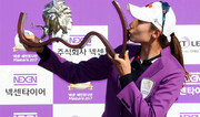 이정은(21·토니모리·사진)은 지난해 평생 한 번인 한국여자프로골프(KLPGA)투어 신인왕을 차지했다. 이소영(20·롯데)과 막판까지 치열한 경합을 벌인 끝에 얻은 값진 성과였다. 그런데 최저 타수 13위(71.68개)에 오를 정도로 안정감은 보였지만 단 한 번도 우승컵을 안아보진 못했다. 이에 비해 경쟁자였던 이소영은 지난해 7월 초정탄산수 용평리조트 오픈에서 우승했다. ‘무관의 신인왕’ 이정은이 KLPGA투어 국내 개막전 롯데렌터카 여자오픈에서 그토록 바라던 우승컵에 입을 맞췄다. 이정은은 9일 제주 서귀포 롯데 스카이힐 골프장 스카이·오션 코스(파72)에서 열린 대회 최종 3라운드에서 6언더파 66타의 맹타를 휘둘렀다. 최종 합계 18언더파 198타를 적어낸 이정은은 2위 박성원(24·대방건설)을 4타 차로 따돌렸다. 이소영은 13언더파 203타로 3위에 자리했다. 1라운드부터 이날까지 사흘 내내 선두를 지킨 완벽한 우승이었다. 우승 상금은 1억2000만 원. 이정은은 내년 미국여자프로골프(LPGA)투어 롯데 챔피언십 출전권도 손에 넣었다. 김자영(26)에게 2타 앞선 단독 선두로 3라운드를 시작한 이정은은 1번홀(파4) 버디로 기분 좋게 출발했다. 전반 9홀에만 5타를 줄여 경쟁자들의 기를 꺾었고, 후반에도 안정적으로 스코어를 지켜냈다. 이정은은 “지난해 우승은 없었지만 아쉽지는 않았다. 2년 차 때는 우승할 수 있다는 확신이 있었다. 그런데 우승이 빨리 찾아와 너무 기쁘다”고 말했다. 그는 또 “우승하면 회사 회장님이 벤츠 차량을 선물해 주신다고 하셨다. 운전면허는 아직 없지만 이제 딸 생각이다”라며 웃었다. 이헌재 기자 uni@donga.com}