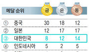 대한민국 선수단의 여름 아시아경기 통산 700번째 금메달의 주인공은 누가 될까. 45억 아시아인의 스포츠 축제 2018 자카르타-팔렘방 아시아경기가 18일 인도네시아 자카르타의 겔로라 붕카르노(GBK) 스타디움에서 화려한 막을 올린다. 이번 대회에는 아시아올림픽평의회(OCA) 소속 45개국에서 온 선수 1만1300여 명이 40개 종목 465개의 세부경기에서 내달 2일까지 16일간 선의의 경쟁을 벌인다. 대회 슬로건은 ‘아시아의 에너지(Energy of Asia)’다. 775명의 선수단(17일 기준·단일팀 33명 제외)이 출전하는 대한민국은 65개 이상의 금메달을 따 6대회 연속 종합순위 2위를 달성하는 게 목표다. 한국은 1998년 방콕 대회부터 2014년 인천 대회까지 5개 대회 연속 일본을 누르고 종합 2위를 차지했다. 대회 조직위원회에 따르면 한국은 처음 출전한 1954년 마닐라 대회부터 2014년 인천 대회까지 총 696개의 금메달을 획득했다. 중국(1342개), 일본(955개)에 이어 통산 금메달 3위다. 한국의 통산 700번째 금메달은 대회 초반 나올 것으로 보인다. 개회식 다음 날인 19일 첫 정식종목으로 채택된 태권도 품새에서 한국의 첫 금메달이 기대된다. 같은 날 펜싱 여자 사브르의 김지연과 남자 에페 박상영도 개인전에서 금메달 사냥에 나선다. 168명의 선수단이 출전하는 북한도 아시아경기 통산 100개 금메달 달성이 유력하다. 직전 대회까지 98개의 금메달을 획득한 북한은 역도와 사격 등에서 강세를 보여 왔다. 여름 국제대회 사상 처음 구성된 단일팀의 메달도 기대할 만하다. 여자 농구와 카누 드래건보트에서 역사적인 메달이 나올 수 있다. 단일팀은 ‘KOREA(한국)’나 ‘DPR Korea(북한)’가 아닌 ‘Unified Korea(하나 된 코리아)’ 선수로 별도 분류된다. 단일팀의 메달은 한국이나 북한 메달 집계에서 제외돼 독자적인 메달로 집계된다. 시상식에선 한반도기가 걸리고 국가 대신 아리랑이 연주된다. 이번 대회에는 올림픽에서는 찾아볼 수 없는 패러글라이딩, 제트스키 등 6개 이색 종목이 눈길을 끈다. 레저 스포츠로 알려진 패러글라이딩과 제트스키에는 각각 6개, 4개의 금메달이 걸려 있다. 영국의 카드 게임 휘스트에서 유래한 브리지는 신체 활동이 없다시피 한 종목 특성상 선수 연령이 높은 게 특징이다. 인도네시아 최대 부호 마이클 밤방 하르토노는 79세의 나이로 인도네시아 국가대표로 선발됐다. 한국은 이 종목에만 유일하게 선수를 파견하지 않는다. 이 밖에 롤러스포츠, 스포츠클라이밍, 마셜아츠 등도 이번 아시아경기에서 처음으로 정규 종목에 포함됐다. ‘페이커’ 이상혁이 출전하는 ‘e스포츠’는 시범 종목으로 열린다. 한국과 북한 선수단은 역대 국제대회 사상 11번째로 공동 입장한다. 각각 100여 명의 선수단이 코리아(KOREA)의 이름으로 주경기장을 행진한다. 남측 기수는 여자농구 단일팀의 주장 임영희가 선정됐으며 북측 기수는 아직 발표되지 않았다.자카르타=이헌재 uni@donga.com / 조응형 기자}