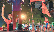 “박항서! 박항서!” 애타게 기다린 응우옌반또안(22)의 결승골이 터지자 베트남 하노이 번화가에 모인 시민 수천 명이 일제히 환호성을 터뜨렸다. 베트남 남자축구대표팀은 27일 2018 자카르타-팔렘방 아시아경기 8강전에서 연장전 혈투 끝에 시리아를 1-0으로 꺾고 4강에 올랐다. 베트남이 아시아경기 남자축구 준결승에 진출한 것은 이번이 처음이다. 1월 아시아축구연맹 23세 이하 챔피언십에서 준우승을 이끈 ‘박항서 매직’이 아시아경기까지 이어졌다. 이날 경기장을 찾은 베트남 축구팬들은 베트남 건국의 아버지 호찌민과 박항서 감독의 사진을 나란히 들어 보이며 열띤 응원전을 펼쳤다. 경기 직후 응우옌쑤언푹 베트남 총리는 국영TV를 통해 박 감독과 훈련위원회, 축구대표팀 선수들에게 축하 인사를 전하기도 했다. 이날 베트남에선 거리 응원 열기가 뜨거웠다. 오토바이의 나라답게 하노이 도심에서는 끝없는 오토바이 행렬이 중심가인 호안끼엠 호수 주변을 맴돌았다. 호수 주변 도로와 광장을 가득 메운 오토바이 행렬은 줄곧 금성홍기(붉은 바탕에 노란색 별이 그려진 베트남 국기)를 흔들고 때때로 붉은 폭죽을 터뜨렸다. 붉은색으로 가득한 하노이의 거리는 2002년 한일 월드컵 때 서울 광화문을 연상케 했다. 시민들은 곳곳에서 “박항서”를 연호했다. 박 감독의 얼굴이 그려진 붉은 깃발은 물론이고 그의 실물 사이즈 패널이 등장할 정도. 한국인 관광객 이한빈 씨(28)는 “만나는 사람마다 ‘코리아’와 ‘박항서’를 외쳤다”며 “한국인인 걸 알아본 베트남 시민들이 연신 하이파이브를 청했다. 음식점에서는 맥주를 공짜로 주더라”라며 웃었다. 베트남의 온라인 매체 VN익스프레스는 “박 감독과 축구대표팀 선수들이 다시 한 번 베트남 국민을 자랑스럽게 만들었다. 베트남 전국이 열광의 도가니에 빠져 밤새 축제를 즐겼다”고 보도했다. 베트남 현지 언론은 박 감독의 조국인 한국과의 일전을 앞두고 그의 일거수일투족에 높은 관심을 보였다. VN익스프레스 베트남어판은 28일 박 감독이 한국전을 언급하며 선수들을 독려하는 동영상을 메인에 걸었다. 박 감독은 이 영상에서 “다음 상대는 한국이다. 절대 위축될 필요 없다. 한국도 연장 승부로 지쳐 있다. 우리는 베트남이다. 그걸 명심해라”라고 승리 의지를 다졌다. 조응형 기자 yesbro@donga.com}