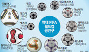 내년 여름 지구촌을 뜨겁게 달굴 남아프리카공화국 월드컵 공인구 ‘자블라니’가 모습을 드러냈다. 스포츠업체 아디다스가 4일 공개한 자블라니는 남아공 토착어로 ‘축하하다’는 뜻.자블라니는 8개의 몰딩 패널을 사용해 역대 공인구 가운데 가장 둥근 공이란 평가를 받는다. 공기역학을 이용한 ‘그립 & 그루브’라는 신기술로 어떤 환경 속에서도 선수들이 최상의 기량을 발휘할 수 있도록 설계됐다. 공에 11가지 색을 사용한 것은 ‘11번째 공인구’와 ‘베스트11’, ‘남아공의 11개 부족’을 상징한다.축구공의 역사는 월드컵과 함께 발전해왔다. 1970년 멕시코대회부터 공인구 공식 공급을 맡은 아디다스는 대회마다 성능이 향상된 공을 선보였다. 멕시코대회의 ‘텔스타’는 현대 축구공의 효시로 불린다. 흰색 정육각형 20개와 검은색 정오각형 12개의 천연가죽 조각으로 만들었다. 그러나 방수기능이 없다는 게 단점이었다.1978년 아르헨티나 대회의 ‘탱고’는 방수기능을 보완했다. 가죽에 폴리우레탄을 덧입혀 탄력과 회전력도 높아졌다. 1986년 멕시코대회의 ‘아스테카’는 최초의 인조가죽 제품. 1994년 미국대회의 ‘퀘스트라’는 제1세대 하이테크 볼로 평가받는다. 표면을 미세한 공기방울이 있는 합성수지로 처리해 반발력과 탄력을 높였다. 2002년 한일 월드컵의 ‘피버노바’는 1978년부터 이어진 탱고 디자인의 틀을 처음으로 깬 혁신적인 디자인으로 화제를 모았다. 2006년 독일대회의 ‘팀가이스트’는 팀정신이라는 뜻으로 공을 구성하는 가죽조각을 32개에서 14개로 줄였다. 고열 고압 접착 처리방식을 사용해 완벽한 구형을 구현했다는 평가를 받았다. 양종구 기자 yjongk@donga.com}