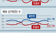 미국 대선을 불과 6일 앞둔 2일 현재 민주당의 힐러리 클린턴, 공화당의 도널드 트럼프 후보 측이 보는 판세 분석은 판이하다. 클린턴의 개인 e메일 사용에 대한 미국 연방수사국(FBI)의 추가 조사에도 최종 승패를 결정하는 대의원 확보 수 추정에선 클린턴이 여전히 앞서고 있다. 하지만 클린턴의 동력은 크게 약화된 반면 트럼프의 상승세는 뚜렷하다. 남은 시간 트럼프가 얼마나 클린턴을 추격하는지가 관건이라는 뜻이다. ABC방송과 워싱턴포스트(WP)가 1일 발표한 여론조사(10월 27∼30일 실시·1128명)에서 트럼프의 지지율(46%)이 클린턴(45%)을 5개월 만에 앞질렀지만 예상 선거인단 수는 클린턴 279명, 트럼프 180명으로 여전히 차이가 크다. 대선 족집게란 평가를 받아 온 신용평가회사 무디스 애널리틱스도 ‘클린턴 332명, 트럼프 206명’으로 클린턴의 대승을 예고했다. 선거 예측 전문 사이트 ‘리얼클리어폴리틱스(RCP)’도 1일 현재 ‘259(클린턴) 대 164(트럼프)’로, 유명한 선거분석가 네이트 실버가 운영하는 사이트 ‘538’도 ‘303.1(클린턴) 대 233.7(트럼프)’ 비율로 클린턴이 크게 앞서고 있다. 하지만 클린턴 캠프를 긴장시키는 것은 선거 판의 추세와 흐름이다. 최근 일관되게 트럼프 우세를 전망해 온 로스앤젤레스타임스와 남캘리포니아대(USC) 공동 여론조사에서 트럼프는 FBI의 추가 조사 발표일인 지난달 29일 지지율 46%로 클린턴(44.1%)을 앞섰고 30일 46.6% 대 43.2%, 31일 46.9% 대 43.3%로 격차를 계속 벌려 나가고 있다. RCP의 경합주 판세에서도 클린턴 우세가 혼전으로, 혼전 지역은 트럼프 우세로 속속 바뀌고 있다. 트럼프 캠프는 1일 “경합주로 분류됐던 6곳인 아이오와, 오하이오, 메인, 플로리다, 네바다, 노스캐롤라이나는 이제 우리(트럼프)에게 넘어왔다. 하지만 이 6곳을 다 이겨도 선거인단 확보 숫자는 266명으로 과반(270명)에 4명이 모자란다. 이제 근소한 열세를 보여 온 뉴햄프셔, 콜로라도, 펜실베이니아 중 1곳만 이기자. 그러면 이긴다”고 밝혔다. 앞으로 이 3개 주에 화력을 집중하겠다는 뜻을 드러낸 것이다. 트럼프를 지지하는 보수 성향의 폭스뉴스는 “경합주들은 한 곳이 역전되면 다른 곳도 넘어갈 가능성이 항상 있다. FBI의 추가 조사가 ‘클린턴이 당선되면 정치적 혼란과 헌정 위기가 계속될 수 있다’는 인식을 주면서 판세 변화가 크게 나타나고 있다”고 분석했다. 클린턴캠프의 로비 무크 캠페인매니저는 1일 “(최대 경합주인) 플로리다가 트럼프로 넘어가는 것 같다. 트럼프가 승리할 수도 있는 길을 열어 놓았다”고 경계심을 보이며 지지를 호소했다. 트럼프 당선 가능성이 거론되면서 금융시장은 요동치고 있다. 영국 파이낸셜타임스(FT)는 1일 ‘공포지수’로 불리는 미국 시카고옵션거래소(CBOE)의 변동성지수(VIX)가 전 거래일보다 8.79% 오른 18.56이었다고 보도했다. 이는 브렉시트(영국의 유럽연합·EU 탈퇴) 국민투표 이후 가장 높은 수준이다. 뉴욕증시도 1일 큰 폭으로 하락했다. 이날 뉴욕증권거래소(NYSE)에서 대형주 중심인 스탠더드앤드푸어스(S&P) 500 지수는 0.68% 하락했다. 트럼프가 당선되면 급락할 것으로 예상되는 멕시코 페소화의 가치는 이날 영국 외환시장에서 2.02% 떨어졌다. 트럼프는 대통령이 되면 불법 이민을 막기 위해 멕시코와 미국 사이에 장벽을 쌓겠다고 밝혀 왔기 때문이다.뉴욕=부형권 특파원 bookum90@donga.com /조은아 기자}