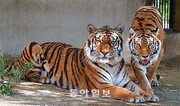 백두산 호랑이 암수 한 쌍이 올해 한국에 온다. 사진에 나온 것과 같은 종류다. 19일 중국 베이징에서 열린 ‘제8차 한중 산림협력회의’에서 중국 측은 한국과 우호를 다지고 백두산 호랑이의 번식을 돕기 위해 백두산 호랑이 한 쌍을 기증하기로 약속했다. 산림청은 중국 정부와 ‘백두산 호랑이 종 보전협력 양해각서’도 체결했다. 한국은 1994년 한중 정상회담과 2005년 한중 산림협력회의 때 각각 1쌍의 백두산 호랑이를 기증받았지만 암컷들이 모두 폐사하는 바람에 단 한 번도 번식에는 성공하지 못했다. 산림청 제공}