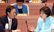 더불어민주당 추미애 신임 대표가 취임 첫날인 29일 국회에서 새누리당 이정현 대표와 첫 여야 사령탑 회동을 했다. 1958년 개띠 동갑내기인 양당 대표는 이날 약 7분 동안 화기애애한 분위기에서 덕담을 나눴다. 이 대표는 새누리당 당대표실을 찾은 추 대표의 손을 꼭 잡으며 “저보다 12년 먼저 국회의원이 됐다. 12년이면 3선인데 정말 국회의원으로 대선배를 넘어 왕 선배님”이라고 치켜세웠다. “(추 대표가) 늘 하시는 것을 보며 커닝도 많이 했다”고도 했다. 추 대표는 “이 대표가 집권당 대표로 당정청의 가교 역할을 해야 한다. 제 목소리를 국민의 소리로 생각해 잘 경청해 달라”라고 당부했다. 그러자 이 대표는 “명심하겠다. 저는 정치력 부분에선 조족지혈(鳥足之血·새발의 피)이다”라며 “촌놈으로 커서 국민의 먹고사는 문제만은 사정을 많이 하겠다”고 답했다. 하지만 여야 대표의 덕담은 여기까지였다. 추 대표는 이날 서울 광화문광장의 세월호 유가족 단식농성장을 방문해 세월호 진상 규명을 두고 정부 여당의 태도 변화를 촉구했다. 추 대표는 또 당선 직후 사드(THAAD·고고도미사일방어체계) 배치 반대 당론 채택을 추진할 뜻을 밝혀 여당과의 갈등이 예상된다. 국민의당 박지원 비상대책위원장 겸 원내대표도 이날 “사드 반대에 외롭게 싸워 온 국민의당으로서는 추 대표의 당선에 천군만마를 얻은 기분”이라고 밝히기도 했다. 추 대표는 박 위원장과의 취임 인사 자리에선 ‘야권 통합’을 두고 신경전을 벌였다. 추 대표는 “김대중 전 대통령의 마지막 유언이 꼭 통합하라는 말씀이었다”라며 “제가 집 나간 며느리도 되돌아오게 하는 가을 전어처럼 당을 통통하게 살찌우겠다고 약속했다”며 야권 통합을 강조했다. 이에 박 위원장은 “첫 자리부터 제가 한 방 먹었네요”라며 웃었다. 국민의당은 더민주당과의 야권 통합보다 중도 개혁 세력을 국민의당으로 모으는 ‘플랫폼 정당론’을 강조하고 있다. 한편 박근혜 대통령은 이날 김재원 대통령정무수석비서관을 통해 추 대표의 취임을 축하하는 난을 전달했다.유근형 기자 noel@donga.com}