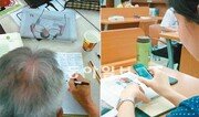 # “슥슥슥∼” 1일 오후 서울 서초구 반포동 국립중앙도서관의 한 열람실. 검은색 볼펜을 쥔 이대우 씨(71)의 오른손이 하얀 A4용지 위를 바삐 오갔다. 비타민과 영양소에 관한 내용들을 깨알같이 적어 나갔다. 그는 “집에 가면 이렇게 손으로 직접 베낀 기록 자료들이 박스 한 가득”이라며 “컴퓨터 이용이 서툴러 종이에 기억하고 싶은 정보를 써 놓는 것”이라며 웃었다. 그의 스마트폰은 주머니 속에 고이 모셔져 있었다.# “찰칵!” 같은 시각 서울 성북구 고려대 중앙도서관 3층 열람실. 스마트폰을 쥔 이원경 씨(21·여)의 오른손이 전공 서적의 한 페이지를 겨냥하면서 난 소리다. 페이지에는 컴퓨터 프로그래밍 언어 관련 도식과 설명이 펼쳐져 있었다. 스마트폰 화면 속으로 복잡한 도식이 고스란히 옮겨졌다. 이 씨는 “스마트폰 카메라 화질이 워낙 좋기 때문에 책을 읽다가 메모하고 싶은 대목은 이렇게 찍어 둔다”고 말했다. 그는 “무엇보다도 손으로 쓰는 것보다 훨씬 빠르고, 나중에 사진들을 컴퓨터에 옮겨 정리만 하면 되기 때문에 수월하다”고 덧붙였다. 도서관을 찾은 사람들의 배움에 대한 열정은 폭염도 비켜 간다. 배움 앞에 나이는 상관없다. 하지만 머리가 희끗희끗한 어르신들과 손자뻘 되는 학생들의 도서관 이용법은 달랐다. 소장자료 검색대 앞은 세대 차이가 가장 확연히 드러나는 곳. 7일 다시 찾은 국립중앙도서관 소장자료 검색대 옆에 마련된 메모지와 펜으로 도서 위치를 적어 나가는 사람은 대부분이 60대와 70대였다. 10대와 20대 학생들은 검색 화면에 뜬 분류번호와 위치를 스마트폰으로 촬영하고는 금세 그곳을 떠났다. 스마트폰에 있는 메모장을 띄워 놓고 엄지손가락 두 개를 분주히 놀려 분류 번호를 메모하는 학생들도 쉽게 눈에 띄었다. 박모 씨(67)는 “스마트폰을 갖고는 있지만 손으로 메모하는 게 오히려 더 편하다”며 “젊은 애들이 사진 찍고 가는 걸 보면 그저 신기하다”고 말했다. 층마다 복사기가 6대 넘게 놓여 있지만 학생들의 발길은 뜸했다. 10대와 20대의 스마트폰 활용은 도서관에만 국한되는 게 아니다. 대학생 김모 씨(26)는 “요즘은 강의시간에 교수님들이 칠판에 판서를 하면 따로 필기를 하지 않고 칠판 자체를 사진으로 찍어두는 학생이 많다”고 귀띔했다. 대형 서점 곳곳에 마련된 도서 검색대 앞에서도 스마트폰을 꺼내 책이 놓여 있는 위치를 사진으로 찍거나 스마트폰에 메모하는 젊은이를 쉽게 찾을 수 있다. 언론사에 갓 입사한 젊은 기자들도 취재자료를 스마트폰으로 찍는 경우가 많다. 정치인의 발언도 곧바로 녹음해 버린다. 일일이 취재수첩에 내용을 옮겨 적었던 선배 기자들과는 다른 모습이다. 고려대 중앙도서관 학술정보관리부 관계자는 “학생들이 스마트폰을 많이 사용하면서 작년에 비해 장서 훼손이 대폭 줄어들어 책 수리비가 많이 절감됐다”고 말했다.박희창 기자 ramblas@donga.com 최지연 인턴기자 이화여대 영문과 4학년 }