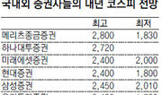 코스피 2,000 시대를 대비한 내년도 자산분배 전략은 어떻게 짜는 것이 좋을까. 각 증권사들은 채권보다는 주식을, 해외보다는 국내 자산 비중을 늘리는 것이 낫다고 조언한다. 또한 원자재 등 대안 투자에도 비중을 둘 필요가 있다고 권한다. 하나대투증권은 내년도 적정 자산배분 비중을 국내주식형 47.5%, 해외주식형 17.5%, 원자재 5%, 주가연계펀드(ELF) 12.5%, 국내채권형 10%, 해외채권형 2.5%, 단기금융상품 5% 등으로 잡았다. 국내 주식 비중을 늘리는 대신 국내 채권형 비중을 줄이라는 말이다. 김대열 하나대투 연구원은 “내년은 국내외 경기 모멘텀 회복과 저금리, 풍부한 유동성 등으로 증시의 상승 여력이 크다는 점을 고려해 주식 비중을 확대할 것을 추천한다”며 “포트폴리오 다변화 차원에서 대안상품 비중도 확대할 필요가 있다”고 말했다. 현대증권의 경우 자산을 국내 주식 32%, 해외 주식 19%, 원자재 등 대안투자 12%, 채권 22%, 예금과 단기금융상품 등 이자자산 15% 등으로 구성하라고 권했다. 역시 주식비중, 대안투자비중을 상대적으로 높게 가져가는 대신 채권 비중과 이자자산 비중을 줄이라는 조언이다. 내년 코스피를 2,400까지 내다보는 데다 유동성 장세가 지속되면서 이머징 주식의 상승세가 지속되리란 분석 때문이다. 인플레이션 헤지(위험분산) 효과를 위해 원자재 등의 대안투자도 빠뜨릴 수 없다. 내년은 금리 인상으로 채권 수익률 하락이 불가피해 보이므로 비중 축소를 권했다. 동양종합금융증권은 국내 주식 40%, 해외 주식 23%, 채권 25%, 대안투자 12% 등의 자산배분 비중을 제시하며 위험자산 중심의 자산배분을 유지하라고 추천했다. 우리투자증권 역시 내년에는 자산시장의 중요 변수가 될 금리가 전반적으로 상승할 것으로 보이는 만큼 채권자산 비중을 축소할 필요가 있다고 조언했다. 박선희 기자 teller@donga.com}