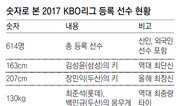 KIA 유격수 김선빈(28)은 화순고 시절 ‘북 치고 장구 친다’는 평을 들었다. 투수로 에이스였고, 타자로는 불방망이에 빠른 발까지 갖췄다. 하지만 2008년도 프로야구 신인 드래프트에서 그는 2차 6번으로 겨우 지명을 받았다. 작은 키 때문이었다. 공식 프로필에 나오는 그의 키는 165cm다. 국내 프로야구 역사상 최단신 선수였던 그는 입단 첫해부터 주전으로 도약하며 ‘작은 거인’이란 별명을 얻었다. 그런데 올해는 김선빈을 올려 봐야 하는 선수가 등장했다. 신인 드래프트에서 2차 4번으로 삼성 유니폼을 입은 외야수 김성윤(18)이 주인공이다. 한국야구위원회(KBO)가 9일 발표한 2017 KBO리그 소속 선수 등록 현황에 따르면 김성윤의 키는 163cm다. 리그 최장신인 두산 투수 장민익(207cm)보다는 44cm나 작다. 하지만 키가 작다고 야구에 대한 열정까지 적은 건 아니다. 허삼영 삼성 스카우트 팀장은 “성윤이는 외형은 작을지 몰라도 성장 가능성은 무한대”라고 했다. 좌투좌타인 김성윤의 장점은 빠른 발과 뛰어난 수비 능력이다. 타격 감각도 좋다. 근성으로 똘똘 뭉쳐 있는 점도 각 팀 스카우트들의 눈길을 끌었다. 허 팀장은 “성윤이의 얼굴에는 ‘근성’이라는 말이 쓰여 있는 것 같다. 팀에 활력을 줄 수 있는 선수”라고 평가했다. 신인임에도 괌 전지훈련 명단에 포함됐을 정도로 기대를 모으고 있다. 당장 주전을 꿰차긴 힘들어도 대수비, 대주자로는 충분히 활용할 수 있을 재목이다. 몇 해 전 전교생이 50여 명밖에 안 되는 경남 양산 원동중은 대통령기 야구대회에서 우승하는 기적을 연출했는데 김성윤은 당시 우승 멤버 중 한 명이다. 포철고 시절엔 청소년 대표로도 선발됐다. 한편 올해 최고 연봉 선수는 롯데로 복귀한 이대호로 역대 최고액인 25억 원을 받는다. 한화는 10개 구단 중 유일하게 연봉 총액이 100억 원(신인, 외국인 선수 제외)을 넘겼다. 평균 연봉 역시 1억8430만 원으로 가장 많다. KBO리그에서 1억 원 이상의 연봉을 받는 선수는 역대 최다인 158명을 기록했다. 이헌재 기자 uni@donga.com}
