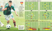 독일의 장점이 독이 됐다. 멕시코가 독일을 격파하며 2018 러시아 월드컵 대회 초반 최대 이변을 일으킬 수 있었던 이유는 독일을 세계 정상으로 이끌었던 장점을 역으로 파고들었기 때문이다. 두 팀의 경기를 분석한 결과 승부는 독일의 오른쪽 수비에서 갈렸다. 독일은 오른쪽 측면 수비수 요슈아 키미히가 상대 진영 깊숙이 진출해 독일의 핵심 플레이어 메수트 외질과의 연계 플레이를 펼치며 공격의 실마리를 풀어 나갔다. 수비수의 공격 가담은 순간적으로 공격 선수의 수를 늘리고 전담 마크맨이 없는 상태에서 상대의 허를 찌르는 장점이 있다. 그러나 멕시코는 전광석화처럼 빠르게 이를 역으로 파고들었다. 키미히가 전진한 뒤 비어 있는 뒷공간을 적극적으로 노렸다. 독일-멕시코전의 최대 승부처는 바로 이곳이었다. 승리는 최대한 빠르게 독일의 빈 곳을 파고든 멕시코의 차지였다. ○ 간파된 독일의 변형 공격 독일은 명목상의 포메이션과 실제 경기에서 펼친 포메이션 간에 다소 차이가 있었다. 독일의 양쪽 측면 수비수 위치가 하프라인 근처로 전진 배치됐다. 그만큼 수비수들의 공격 가담이 잦았다. 독일의 주요 공격 루트는 우측(55%)이었다. 좌측(25%)과 중앙(20%)에 비해 압도적으로 많았다. 우측 공격은 수비수 키미히에서 시작됐다. 수비 진영에서 공을 빼앗은 중앙 수비수 제롬 보아텡이 키미히에게 패스(총 패스 횟수 23회로 팀 내 최다)하면 키미히가 오른쪽 깊숙이 침투해 외질 또는 사미 케디라에게 찔러주는 식(패스 횟수 각 10회)이다. 우측 연결 위주의 단조로운 공격 패턴은 멕시코 수비진에 쉽게 막혔다. 이 루트를 멕시코 왼쪽 수비수 헤수스 가야르도가 막아섰다. 가야르도는 9개의 가로채기를 성공해 역습의 발판을 만들었다. 한국에서는 왼쪽 수비수들이 해줘야 할 역할이다. 반면 멕시코 수비진은 양쪽 수비수가 전방 배치된 독일과 달리 사전 발표한 포메이션과 실제 포메이션이 거의 일치했다. 수비진이 독일의 공격을 봉쇄하는 본연의 역할에 충실했던 셈이다. 다만 명목상 오른쪽 미드필더인 엑토르 에레라는 실제 경기에서는 주로 정중앙에서 플레이했다. 에레라는 팀 내에서 가장 많은 활동량(11.592km)으로 수비와 역습 양쪽에 가담하며 중원 전체를 책임졌다. 이는 멕시코가 공격뿐 아니라 수비에서 철벽을 구축한 중요한 요인이었다. ○ 한쪽에 집중된 공격 루트… 내용은 전혀 달라 멕시코 역시 좌측 공격이 58%로 과반을 차지(중앙 29%, 우측 13%)하며 한쪽을 파고들었다지만 내용 면에서는 독일과 완전히 달랐다. 독일의 키미히가 공격 가담을 위해 비운 공간에 멕시코의 이르빙 로사노가 빠른 발을 이용해 침투해 들어갔다. 독일이 번번이 끊기는 쪽으로 공을 몰았다면 멕시코는 ‘먹히는’ 곳에 집중해 공격에 나선 셈이다. 로사노는 전반 35분 하비에르 에르난데스의 패스를 받아 감각적인 오른발 슈팅으로 독일 골망을 흔들어 1-0 결승골을 뽑았다. 카를로스 오소리오 멕시코 감독은 “우리는 항상 두 명의 빠른 윙어를 활용하는데 로사노가 그중 한 명이다”고 말했다. 요하임 뢰프 독일 감독도 “상대의 날개가 매우 강했다”고 인정했다. 측면 수비가 약한 한국 대표팀은 로사노의 발 빠른 돌파에 골머리를 앓을 공산이 크다. 로사노를 막는 수비진은 그가 상대적으로 몸싸움이 약하다는 점을 노려 강한 압박으로 발을 묶어야 한다. 그러나 보다 근본적으로는 멕시코 미드필더 에레라를 봉쇄하는 것이 필요하다. 에레라에서 공격진으로 이어지는 킬 패스를 차단하는 것이 멕시코 역습 차단의 열쇠다.조응형 기자 yesbro@donga.com}