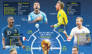 새로운 호랑이들이 발톱을 세웠다. 세계는 새로운 축구 영웅의 탄생을 맞이할 준비가 됐다. 프랑스 우루과이, 브라질 벨기에, 러시아 크로아티아에 이어 잉글랜드와 스웨덴이 합류하면서 2018 러시아 월드컵 8강 빅매치 대진표가 완성됐다. 프랑스와 우루과이의 대결은 ‘제2의 펠레’로 불리는 프랑스의 샛별 킬리안 음바페와 ‘그라운드의 기인’으로 불리는 우루과이 루이스 수아레스의 맞대결로 관심을 끈다. 우승 후보 프랑스는 대회 초반 다듬어지지 않은 조직력으로 실망스러운 경기를 펼쳐 ‘서행 중인 스포츠카’에 비유되기도 했다. 하지만 아르헨티나와의 16강전에서 만 19세 음바페의 충격과도 같은 등장과 함께 힘과 스피드를 앞세워 질주하는 초고속 스포츠카다운 면모를 되찾았다. 우루과이는 스페인 프리메라리가 득점 3위에 오른 수아레스의 결정력에 기대를 걸고 있다. 상대를 물어뜯거나 혼자 넘어지는 등 이상 행동을 하는 수아레스지만 고비마다 순도 높은 골 결정력을 과시해왔다. 슈퍼스타 네이마르와 로멜루 루카쿠가 맞붙는 브라질-벨기에전은 화끈한 화력전이 예상된다. 두 팀은 나란히 슈팅 수 1위(77개)에 올라 있다. 브라질은 필리피 코치뉴, 윌리앙 등이 네이마르에게 집중되는 견제를 분산시키려 한다. 브라질과 벨기에는 모두 최고의 공수 밸런스를 갖췄다고 평가받는다. 벨기에는 12골(4실점)로 이번 대회 팀 최다 골을 기록하고 있다. 브라질은 7골(1실점). ‘앙숙’ 잉글랜드와 스웨덴도 자존심 대결을 벌인다. 주요 국제대회에서 고비마다 맞붙었던 두 팀의 팬들도 주먹다짐을 자주 벌이곤 했다. 잉글랜드는 1968년 5월 승리 이후 2011년까지 43년간 스웨덴을 이기지 못하는(10연속 무승·7무 3패) ‘스웨덴 징크스’를 겪기도 했다. 이번 대회 득점 선두인 해리 케인의 공격력과 4경기에서 2점만을 내준 평균 신장 187cm의 스웨덴 장신 수비진의 대결이 볼만하다. 스웨덴 에이스 에밀 포르스베리의 활약도 눈길을 끈다. ‘사령관’ 루카 모드리치의 크로아티아와 ‘체력왕’ 러시아도 마지막 4강행 티켓을 두고 싸운다. 크로아티아는 모드리치와 이반 라키티치가 버티는 ‘황금 중원’을 앞세워 1998년 프랑스 월드컵 3위에 올랐던 20년 전 영광을 뛰어넘으려 한다. 러시아는 16강까지 476km로 8강 진출 팀 중 가장 높은 활동량을 보였다. 데니스 체리셰프와 아르툠 주바가 공격을 이끌고 있다.조응형 기자 yesbro@donga.com}
