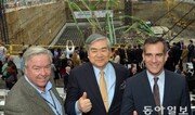 한진그룹이 미국 로스앤젤레스(LA)에 재건축하는 73층짜리 ‘윌셔 그랜드 호텔’이 최대 콘크리트 타설(부어 넣는다는 뜻) 규모로 기네스북에 등재될 것으로 전망된다. 한진그룹은 15일(현지 시간) 미국 LA에서 조양호 한진그룹 회장과 건물 설계회사 AC마틴의 크리스 마틴 최고경영자(CEO), 에릭 가르세티 LA 시장 등이 참석한 가운데 콘크리트 타설 행사를 열었다. 15, 16일 호텔 용지에 쏟아 붓는 콘크리트 양은 4만2930t으로 레미콘 2120대 분량이다. 한진 측은 “한번에 많은 양의 콘크리트를 부어 넣으면 구조를 튼튼하게 다질 수 있다”고 설명했다. 한진은 1989년 인수한 이 호텔을 2017년까지 고급 객실과 컨벤션 시설, 사무공간 등을 갖춘 73층 건물로 증축할 계획이다. 10억 달러(약 1조600억 원) 이상을 투입한다. 공사 기간에는 1만1000여 개의 일자리와 8000만 달러의 세수 효과, 완공 후 1700여 개 일자리와 매년 1600만 달러 이상의 세수 효과가 발생할 것으로 전망된다. 강유현 기자 yhkang@donga.com}