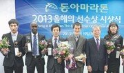‘마라톤 전도사’ 정석근 씨(40)가 19일 서울 종로구 세종로 동아미디어센터에서 열린 ‘2013년 동아마라톤 올해의 선수상’ 시상식에서 최우수선수상을 받았다. 동아일보는 2007년 ‘풀뿌리 마라톤’의 발전을 위해 동아마라톤 올해의 선수상을 국내에서 처음으로 만들었다. 3월 서울국제마라톤대회 겸 동아마라톤과 10월 동아일보 주최 3개 대회(공주, 서울달리기, 경주국제) 성적을 토대로 우수선수(연령대별 남자 5명, 여자 3명)와 최우수선수를 선정한다. 최우수선수에 선정된 정 씨는 서울국제마라톤 마스터스 남자부에서 2시간28분58초로 4위를 기록했고, 공주마라톤에서는 2시간39분29초로 우승을 차지했다. 20년 전 실업 마라톤 선수로 잠시 활동한 정 씨는 직장생활을 하느라 마라톤을 접었다가 2007년 다시 마라톤화를 신었다. 2001년부터 전국을 돌아다니며 90회 넘게 마라톤 꿈나무들을 위한 무료 강습을 하고 있는 정 씨는 지난해와 올해 마라톤 대회 상금으로 받은 1000만 원을 꿈나무들을 위해 기탁하고, 가정형편이 어려운 마라톤 꿈나무를 위해 매달 70만 원을 후원하고 있다. 정 씨는 “앞으로 더 열심히 마라톤을 알리기 위해 뛰라는 의미로 상을 준 것 같다. 기록보다는 더 많은 사람들과 함께 뛰는 마라토너가 될 수 있도록 노력하겠다”고 말했다. 김동욱 기자 creating@donga.com}