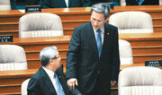 한일 정보보호협정 사태와 관련해 야당에서 문책론이 제기된 김성환 외교통상부 장관(왼쪽)과 김관진 국방부 장관이 2일 19대 국회 개원식에 참석했다. 국회 본회의장 국무위원석을 찾은 이들의 표정이 어둡다. 김동주 기자 zoo@donga.com}