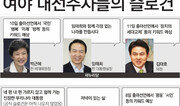 여야 대선주자들이 자신의 대통령 이미지(PI·presidential identity)를 구축할 ‘대선 슬로건’ 경쟁에 한창이다. 각 캠프의 홍보, 전략 참모들은 ‘쉽게 와 닿으면서도 세련되고 후보의 시대인식을 효과적으로 내보여 국민을 사로잡을 한마디’를 찾는 데 혈안이 돼 있다. 지금까지 반향이 가장 크다고 평가되는 슬로건은 손학규 민주통합당 상임고문의 ‘저녁이 있는 삶’이다. 노동시간 단축을 통한 여유 있는 삶을 상징한다. 회사원 변모 씨(32)는 “매일 야근에 시달리는 내 모습이 떠올라 슬로건을 듣는 순간 눈물이 핑 돌았다”고 말했다. 이 슬로건은 지난해 9월 민주노총 대변인 출신의 손낙구 보좌관이 한 대기업 직원에게서 받은 전화에서 시작됐다. “회사 경쟁력은 어디서나 인정받지만 유럽 기업 직원들의 여유로운 휴가 얘기만 나오면 할 말이 없어졌다”는 내용. 손 보좌관은 “노동시간 단축과 삶의 질 향상을 압축적으로 표현하면 젊은이들이 크게 공감할 것이라는 확신을 갖게 됐다”고 한다. 이를 바탕으로 회의 끝에 대외메시지 담당 김계환 비서관이 문구를 만들었다. 경제적 고통에 시달리는 서민들에겐 다소 한가롭게 들리고 목가적이라는 지적도 있다. 문재인 민주당 상임고문은 출마 선언에서 ‘우리나라 대통령’ 등의 키워드를 내세웠다. 네 편 내 편 가르지 않고 함께 가는 지도자란 의미다. “인상적이지 않다”는 지적과 “‘우리’라는 표현이 통합의 메시지에 적합하다”는 평가가 함께 나온다. 문 고문 측은 아직 ‘메인 슬로건’은 나오지 않았다고 밝혔다. “출마선언문에 슬로건을 담자는 의견이 있었지만 슬로건을 먼저 내고 정책을 채워가기보다 정책을 구체화하면서 그에 맞는 슬로건을 만드는 게 순서라고 판단했다”고 한다. 캠프에 선거대책위원장 인선이 완료되는 이달 중순 슬로건을 내놓을 계획이다. ‘노무현의 카피라이터’로 불린 정철 사무국장과 시인이자 민주당 의원인 도종환 캠프 대변인이 주축이 돼 구상하고 있다. 도 대변인은 5일 한 라디오 인터뷰에서 “‘저녁이 있는 삶’, 이런 문구를 만들어낸 분이 참 훌륭하다. 정서에 어필하는 캐치프레이즈를 못 만들어서 고민이 많다”고 말했다. 정세균 민주당 상임고문은 ‘빚 없는 사회, 편안한 나라’를 내세웠다. 캠프 관계자는 “앞으로 대한민국이 심각한 경제위기 상황에 직면할 것이기에 개인·가계·국가의 부채 극복이 시대과제가 될 것이라는 점에 착안했다”고 설명했다. 10일 대선 출마를 선언하는 박근혜 전 새누리당 비상대책위원장은 ‘국민’ ‘행복’ ‘미래’ ‘함께’ 등을 키워드로 삼을 가능성이 높다. 경선 캠프 이름도 ‘국민행복캠프’다. 다만 그동안 강조해온 ‘국민이 행복한 나라’보다 메시지가 또렷하게 각인되는 슬로건을 찾고 있다. 4·11총선 때 국민통합의 메시지를 ‘100% 대한민국’으로 정한 일을 좋은 예로 꼽는다. ‘1% 대 99%의 대결’을 내세운 민주당을 겨냥한 슬로건이었다. 임태희 전 대통령실장은 ‘임태희와 함께 걱정 없는 나라를 만듭시다’를 내세울 예정이다. 이는 청와대를 떠난 후 4개월의 민생탐방에서 얻은 교훈이 바탕이 됐다. 만나는 국민마다 ‘걱정’을 얘기하더라는 것. 11일 출마 선언을 예고한 김태호 새누리당 의원은 ‘정치의 세대교체’ 등 몇 가지를 놓고 고심 중이다. ‘현재의 위기가 정치의 무능에서 비롯됐으니 낡은 리더십을 바꿔 새로운 대한민국을 만들자’는 메시지가 유력하다.윤완준 기자 zeitung@donga.com 홍수영 기자 gaea@donga.com 김지은 인턴기자 한양대 정치외교학과 4학년 }