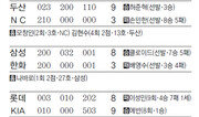 KIA가 모처럼 끈질긴 뒷심을 발휘했다. 그 마무리는 새로운 안방마님 백용환(26)이 맡았다. KIA는 24일 광주에서 열린 롯데와의 안방경기에서 9회초 상대에게 2점을 내줘 6-8로 뒤져 패색이 짙었다. 하지만 9회말 이범호의 2루타와 김원섭의 볼넷에 이은 더블 스틸로 1사 2, 3루의 기회를 잡았다. 타석에 나선 포수 백용환은 롯데 투수 이성민의 공을 받아쳐 오른쪽 담장을 넘기는 3점 홈런을 터뜨렸다. 4시간 3분의 승부 끝에 KIA가 9-8의 짜릿한 역전승을 거두는 순간이었다. 2008년 프로 데뷔 후 자신의 첫 끝내기 홈런이었다. 2군에서 시즌을 시작한 뒤 지난달 30일 처음 1군에 진입한 백용환은 최근 대세를 이루고 있는 공격형 포수로 주목받고 있다. 시즌 성적은 14경기에서 타율 0.324, 5홈런, 10타점으로 11안타 가운데 홈런이 절반 가까이 된다. 이날 KIA는 1-6으로 크게 뒤진 7회 5점을 뽑으며 극적인 역전승의 발판을 마련해 홈팬들을 열광시켰다. 한편 LG와 SK는 이날 신재웅(33) 정의윤(29) 신동훈(21·이상 LG)과 진해수(29) 여건욱(28) 임훈(30·이상 SK)을 바꾸는 3 대 3 트레이드를 했다. 김종석 기자 kjs0123@donga.com}