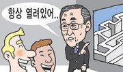 반기문 유엔 사무총장이 4일 저녁 미국 뉴욕의 유엔본부에서 열린 유엔출입기자단(UNCA) 연례 송년 만찬에서 유머 넘치는 연설로 기자들의 폭소를 자아냈다. 밴드가 라이브 음악을 연주하는 가운데 등장한 반 총장은 “세계 최초로 사람의 속마음을 보여주는 기계를 가져왔다”며 청중들의 눈과 귀를 사로잡았다. 반 총장이 ‘유엔 사무총장실 문이 기자들에게 항상 열려 있다’고 말하자 영상에는 복잡한 미로가 등장했다. 반 총장은 “여러분은 이 복잡한 미로에서 길을 잃지 않고 찾아올 수만 있으면 된다”고 말해 청중들의 폭소를 유발했다. 또 반 총장이 심각한 지구온난화를 얘기하면서 가장 열이 높아지는 장소를 얘기하자 영상에는 기자회견장 모습이 나타났다. 곤란한 질문 공세에 시달리는 기자회견장이 반 총장에게 가장 ‘후끈한’ 장소임을 내비친 것이다.이어 반 총장이 새로 대변인을 뽑는 과정에서 자신이 가장 일을 맡겼으면 했던 사람은 지원조차 하지 않았다고 말하자 영상에는 반 총장을 괴롭히는 글을 자주 쓰는 것으로 알려진 미국의 한 인터넷 블로거 기자의 얼굴이 등장했다. 이 기자에 대한 반 총장의 심정을 역설적으로 드러낸 것이다. 유엔을 출입하는 각국 언론사 기자들의 모임인 UNCA가 주최하는 송년 만찬은 유엔 사무총장도 참석해 유쾌하게 얘기를 나누며 1년을 정리하는 자리. 반 총장은 취임 직전인 2006년 모임에는 차기 총장 자격으로 참석해 연설에 이어 크리스마스 캐럴인 ‘산타클로스 이즈 커밍 투 타운(Santa Claus is coming to town)’을 ‘반기문 이즈 커밍 투 타운(Ban Ki Moon is coming to town)’으로 개사한 노래를 불러 환영받는 등 매년 이 행사에 참석했다. 전승훈 기자 raphy@donga.com뉴욕=신치영 특파원}